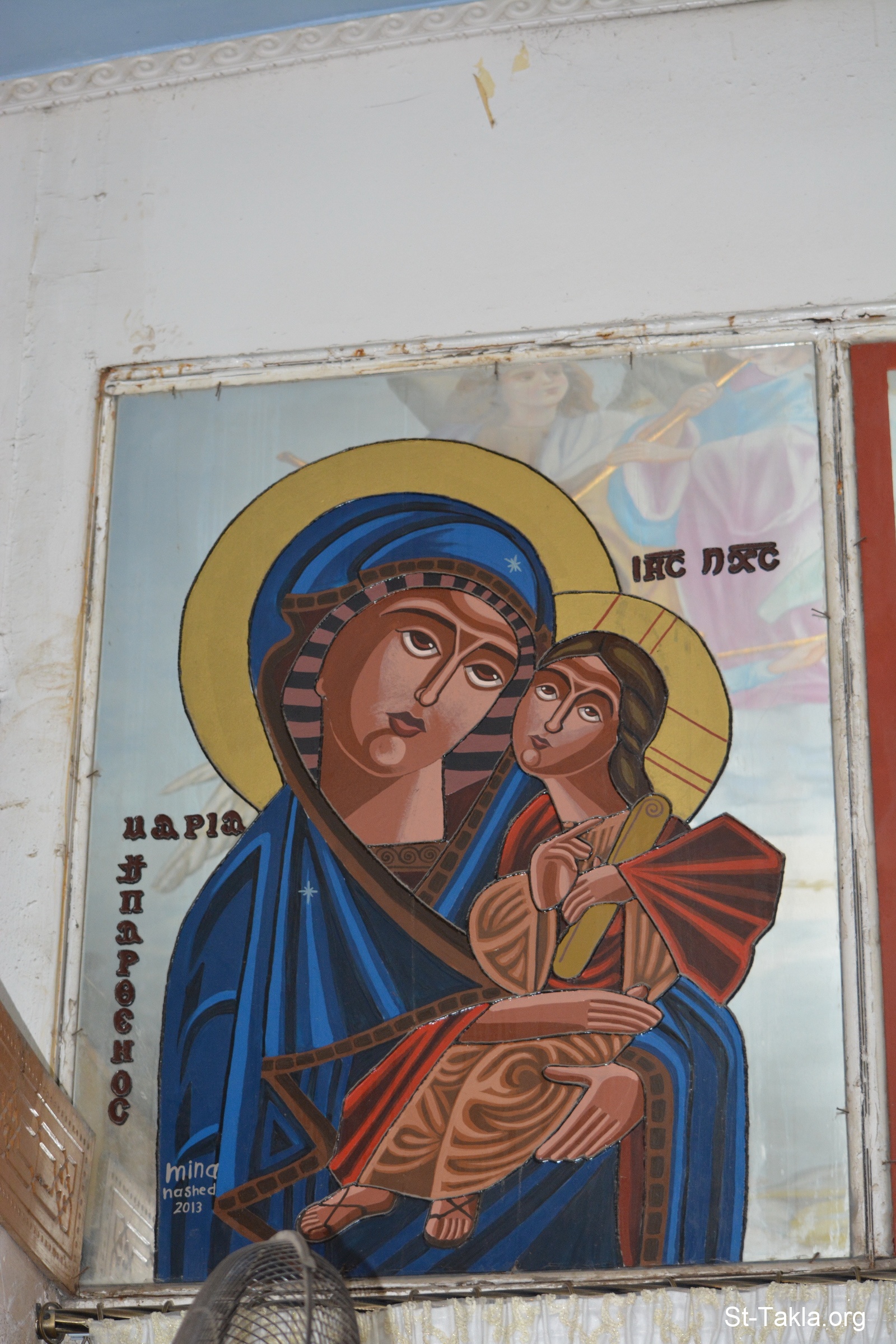 , Coptic art over a mirror by Mina Nashed, 2013 - St. Demiana Coptic Orthodox Church, Hadara, Alexandria, Egypt - (image 5) - Photograph by Michael Ghaly for St-Takla.org - 23 July 2022.
