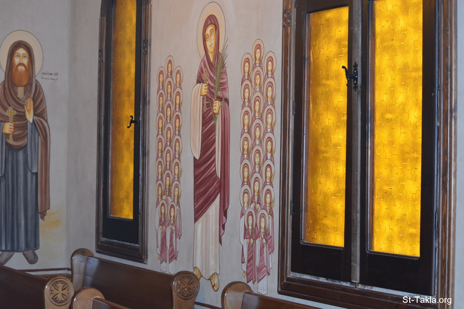 , Coptic fresco by Raouf Rezk-Allah and Hanan Awad, 2009 - Various photos from the small church, at St. Mary Coptic Orthodox Church, Gianaclis, Alexandria, Egypt - Photograph by Michael Ghaly for St-Takla.org, May 31, 2014.