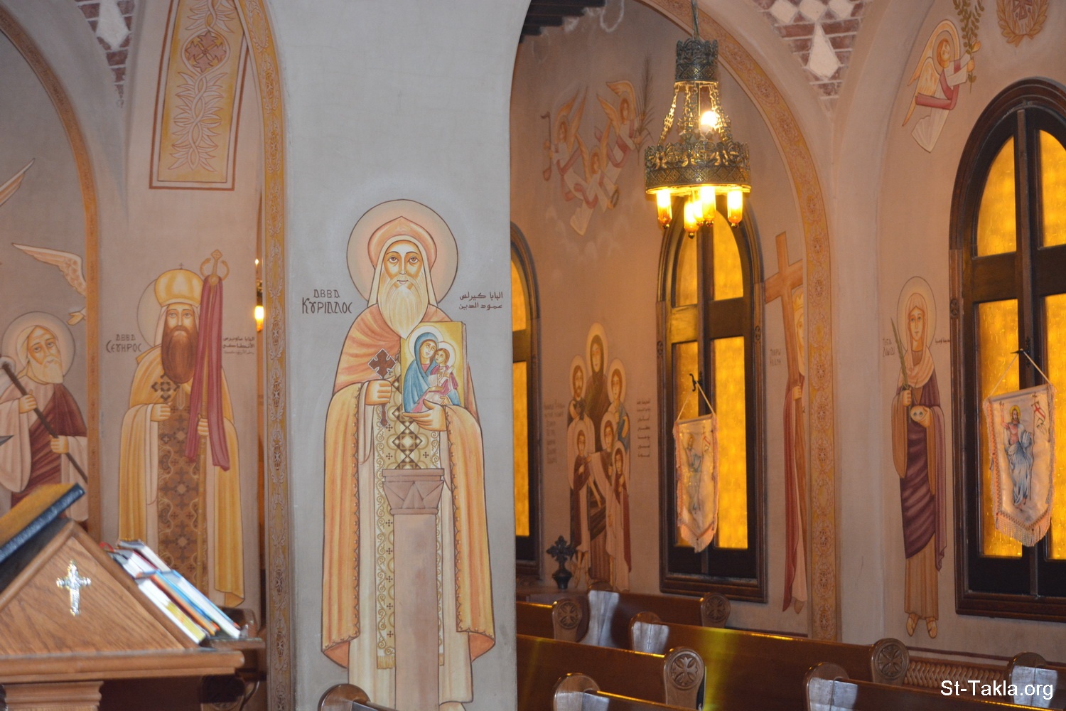 , Coptic fresco by Raouf Rezk-Allah and Hanan Awad, 2009 - Various photos from the small church, at St. Mary Coptic Orthodox Church, Gianaclis, Alexandria, Egypt - Photograph by Michael Ghaly for St-Takla.org, May 31, 2014.