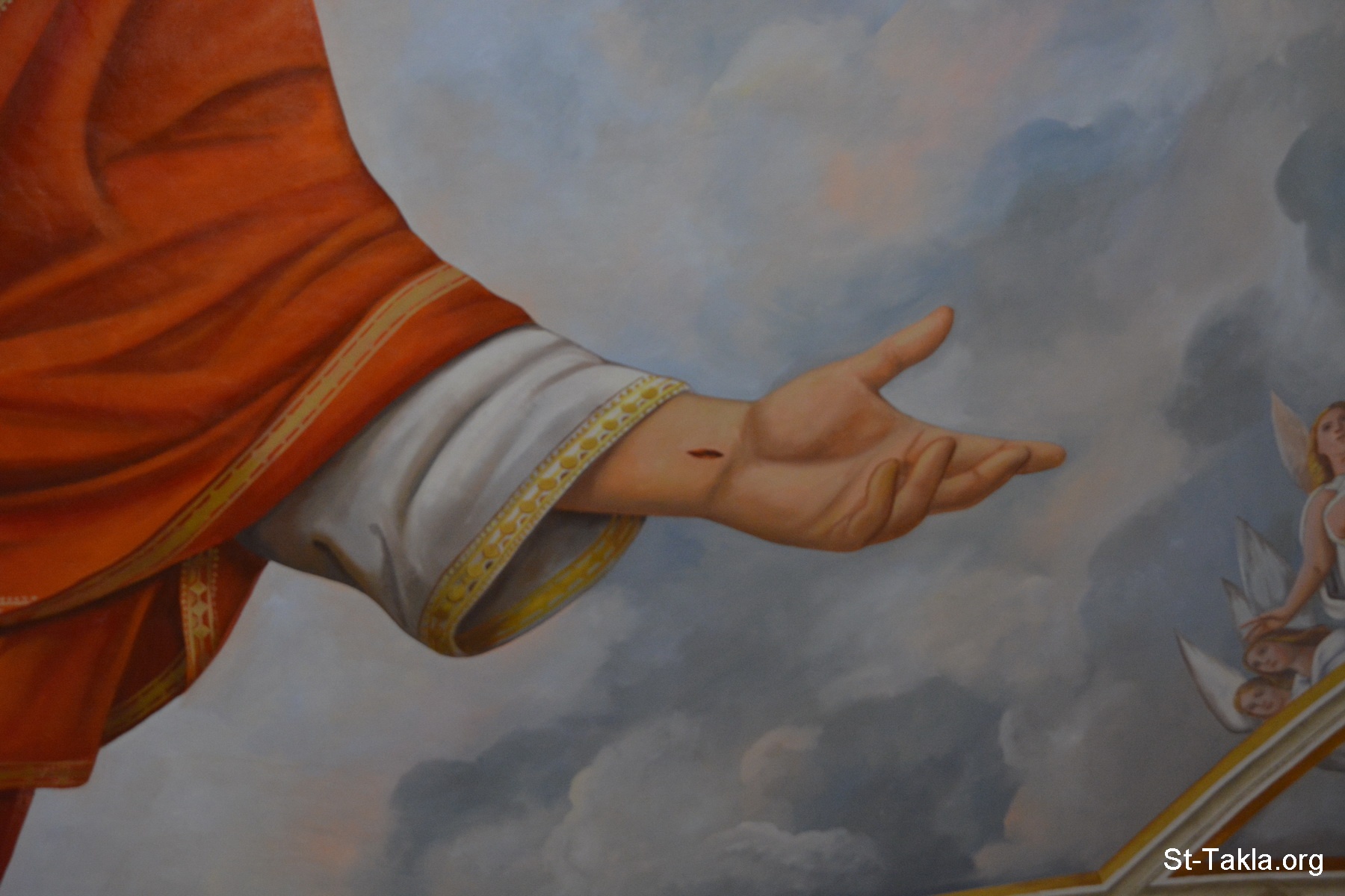 ، رسم الفنان عماد نعيم، 2016 - من صور كنيسة العذراء مريم والقديس يوسف، سموحة، الإسكندرية، مصر - تصوير مايكل غالي لموقع الأنبا تكلاهيمانوت، 6 ديسمبر 2019 م.