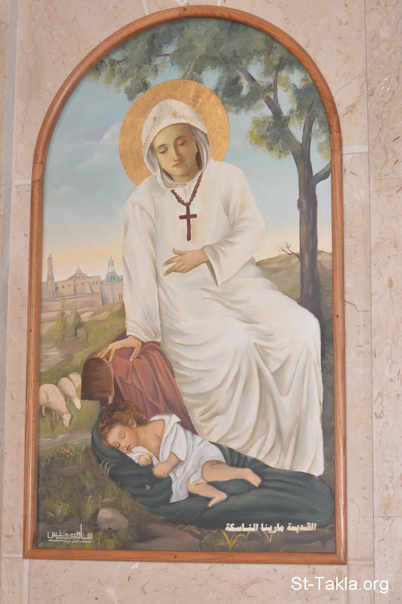 أيقونة القديسة مارينا الناسكة (الأب مارين)، رسم الفنان سامي حنس - من صور كنيسة الملاك ميخائيل، مصطفى كامل، الإسكندرية، مصر - تصوير مايكل غالي لموقع الأنبا تكلاهيمانوت، 1 ديسمبر 2013 م.