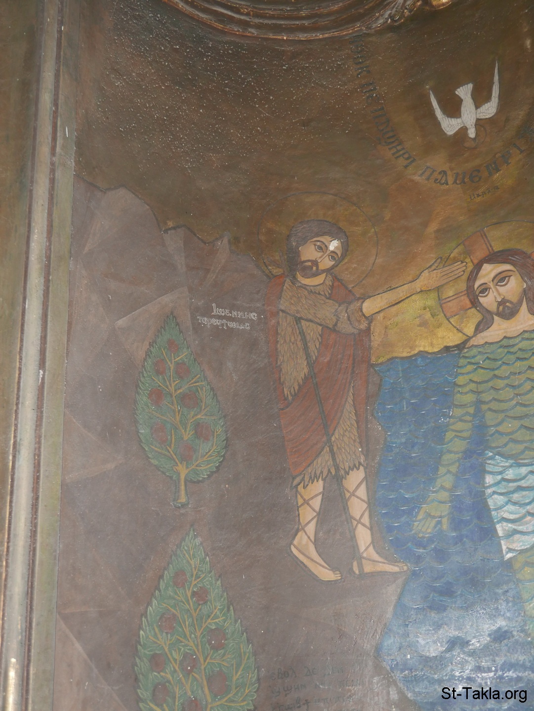 The Baptism of Jesus Christ by Saint John the Baptist, Coptic icon (photo 2) - St. Mina Coptic Orthodox Church, Fleming, Alexandria, Egypt - Photograph by Michael Ghaly for St-Takla.org, December 4, 2019.