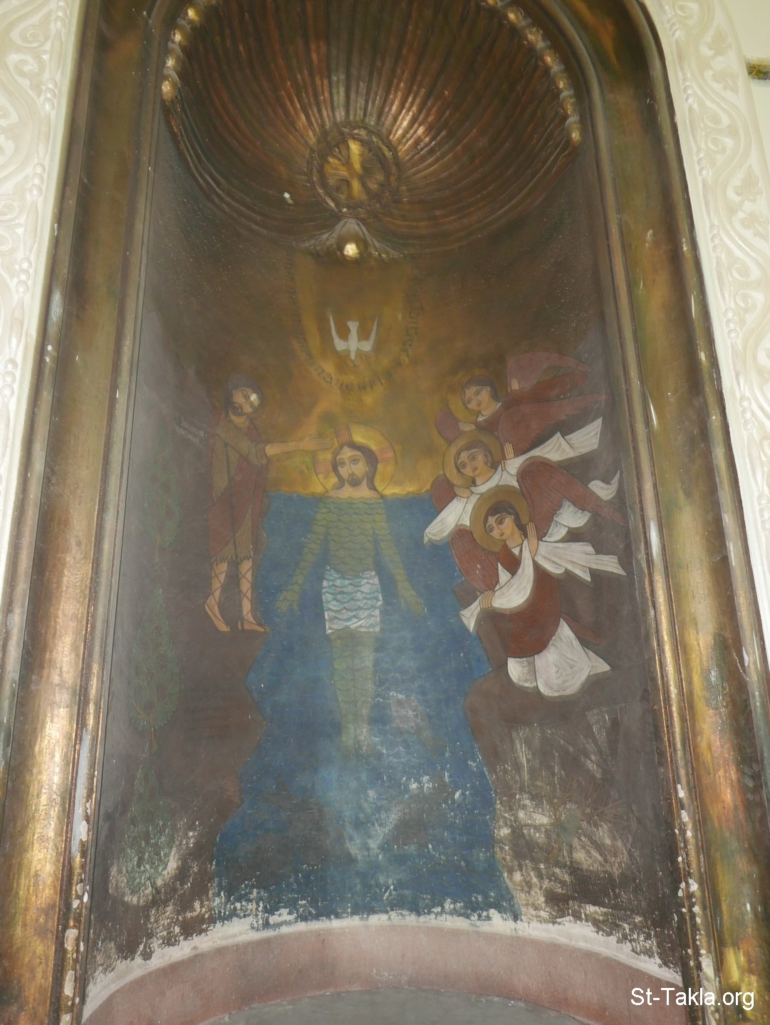 The Baptism of Jesus Christ by Saint John the Baptist, Coptic icon (photo 1) - St. Mina Coptic Orthodox Church, Fleming, Alexandria, Egypt - Photograph by Michael Ghaly for St-Takla.org, December 4, 2019.
