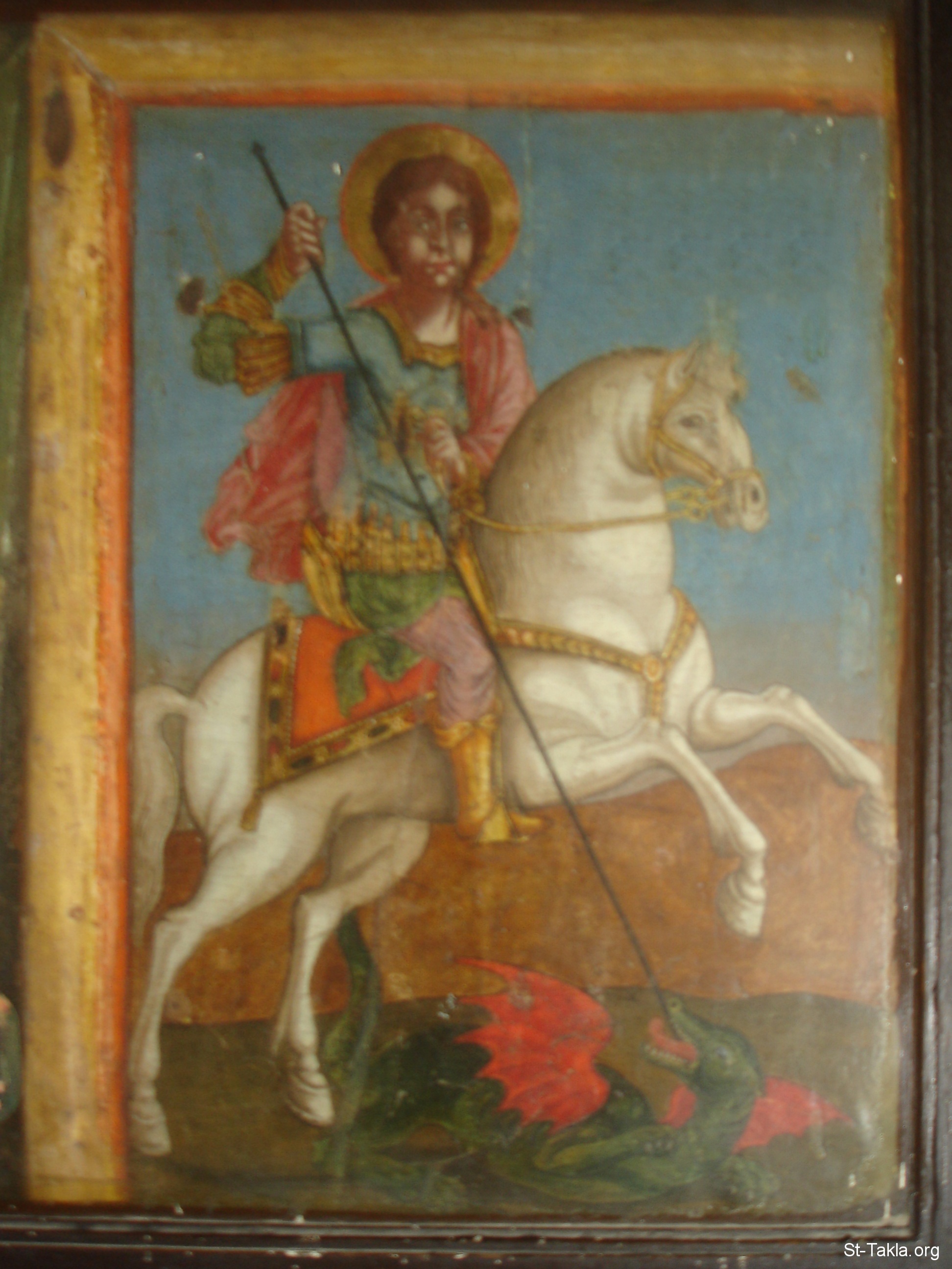 Coptic icon of Saint George the Roman Saint (mainly) - from St. Reweiss Church, Abbassia, Cairo, Egypt - October 2011 - Photograph by Michael Ghaly for St-Takla.org.