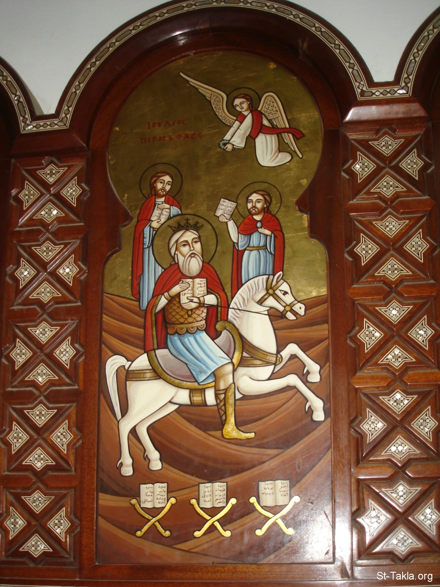 الشهيد يوليوس الأقفهصي كاتب سير الشهداء، أيقونة قبطية رسم الفنان أيمن أديب، غالبًا عام 2006 - من صور كنيسة الشهيدة بربارة، الزاوية الحمراء، القاهرة، مصر - أكتوبر 2011 - تصوير مايكل غالي لـ: موقع الأنبا تكلا هيمانوت.