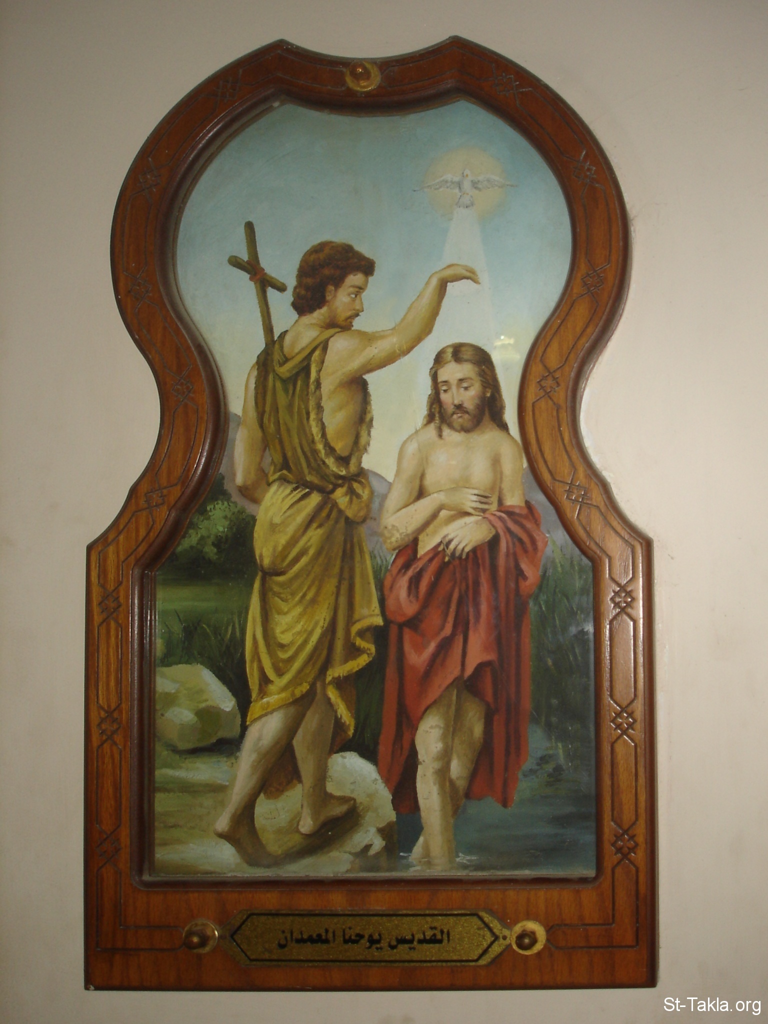 القديس يوحنا المعمدان يعمد السيد المسيح، أيقونة قبطية حديثة - من صور الكاتدرائية القديمة بالأزبكية، مبنى، القاهرة، مصر - أكتوبر 2011 - تصوير مايكل غالي لـ: موقع الأنبا تكلا هيمانوت.