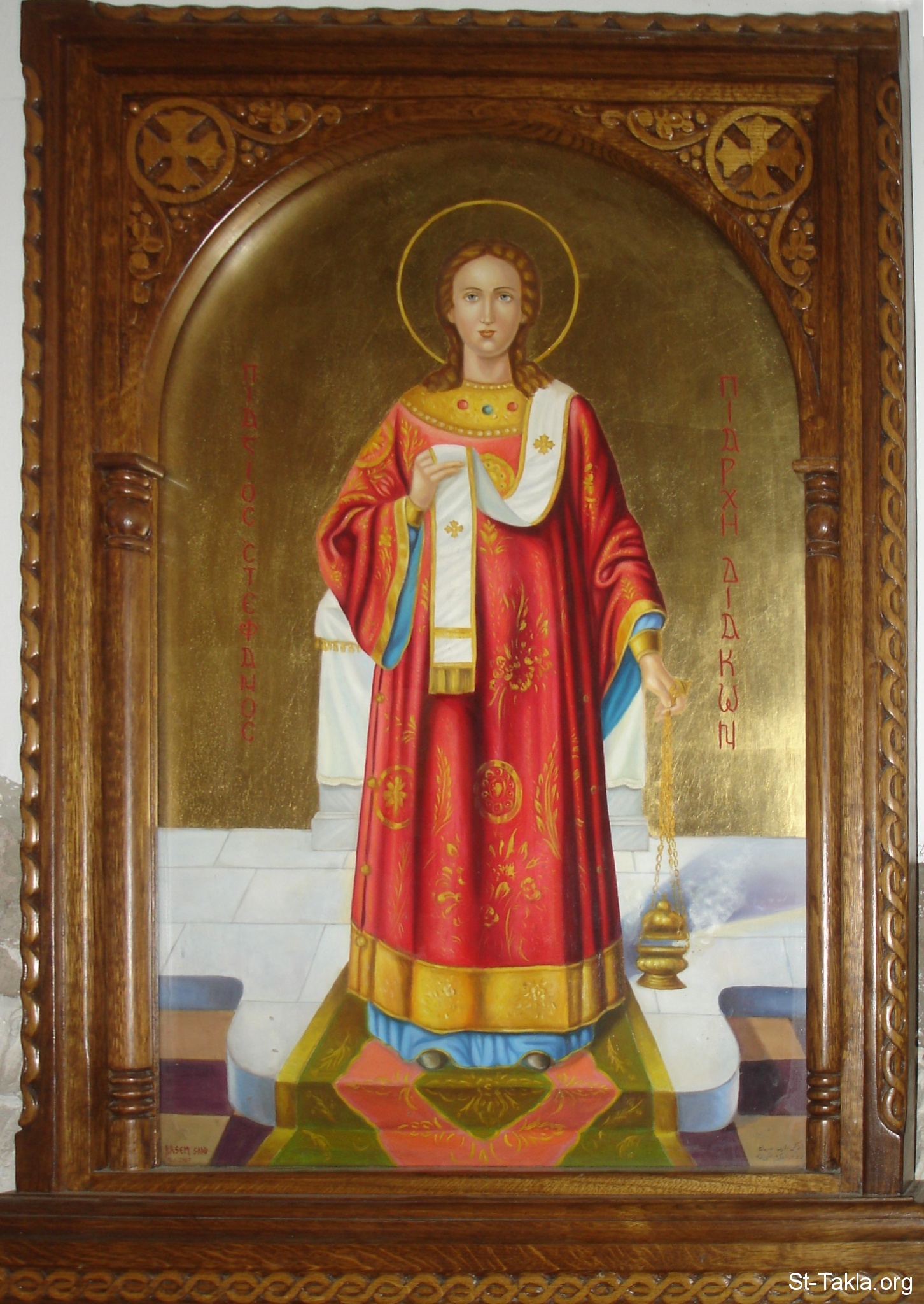 Coptic icon showing the Saint Estefanos the first Deacon and Martyr, by Bassem Saad, 2009 - from Old Coptic Cathedral, other, Azbakya, Cairo, Egypt - October 2011 - Photograph by Michael Ghaly for St-Takla.org.