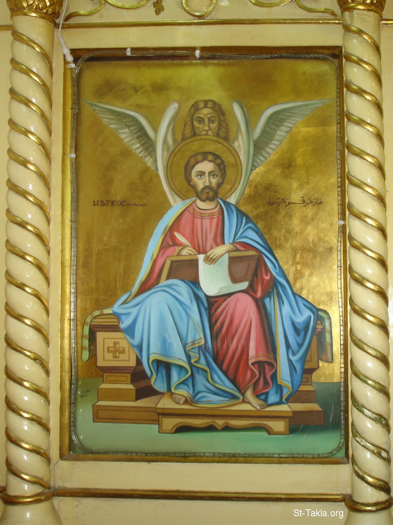 القديس مرقس الرسول والإنجيلي، رسم الفنان م. يوسف، يونيو 1995 م. - من صور كنيسة العذراء والأنبا بيشوي، العتبة، القاهرة، مصر - أكتوبر 2011 - تصوير مايكل غالي لـ: موقع الأنبا تكلا هيمانوت.