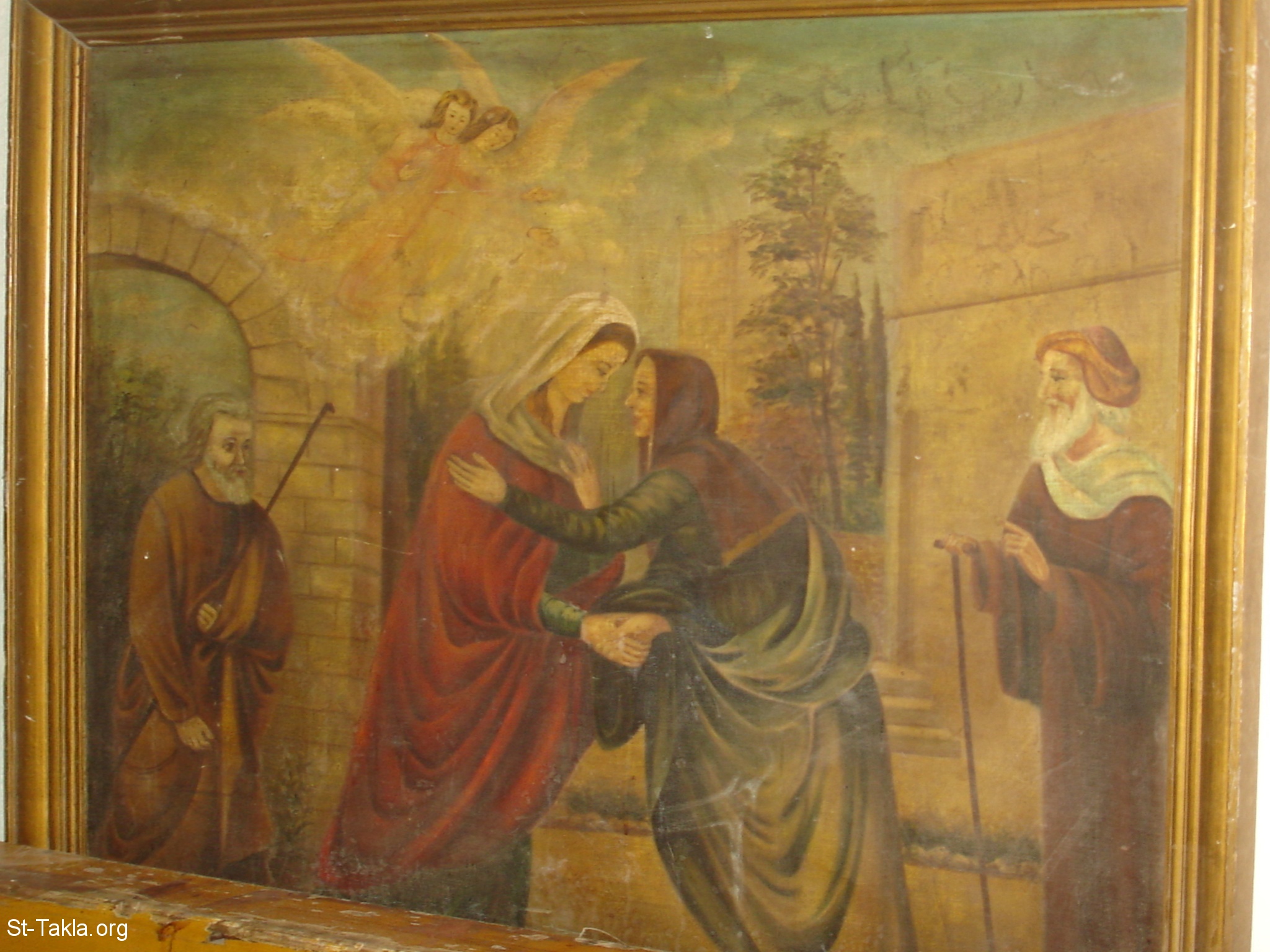 لقاء القديسة مريم العذراء والقديسة أليصابات، ويظهر في الصورة: ملائكة، القديس يوسف النجار، القديس زكريا الكاهن - من صور كنيسة العذراء مريم، حارة زويلة، القاهرة، مصر - أكتوبر 2011 - تصوير مايكل غالي لـ: موقع الأنبا تكلا هيمانوت.