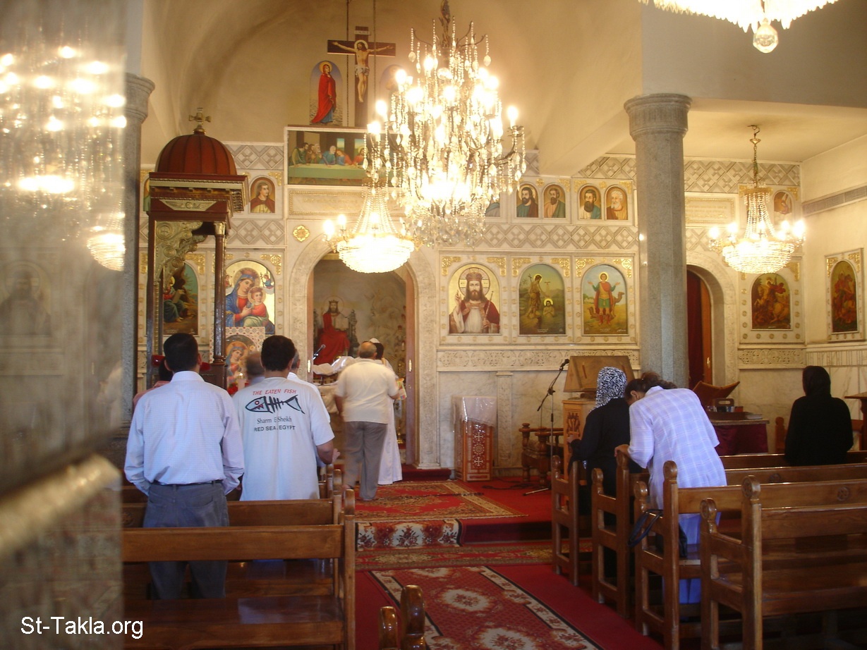 أشخاص عباد يصلون في الكنيسة - كنيسة العذراء (صورة 142) - دير مارمينا العجائبي، مريوط، الإسكندرية، مصر - تصوير مايكل غالي لموقع الأنبا تكلاهيمانوت - سبتمبر 2009 م.
