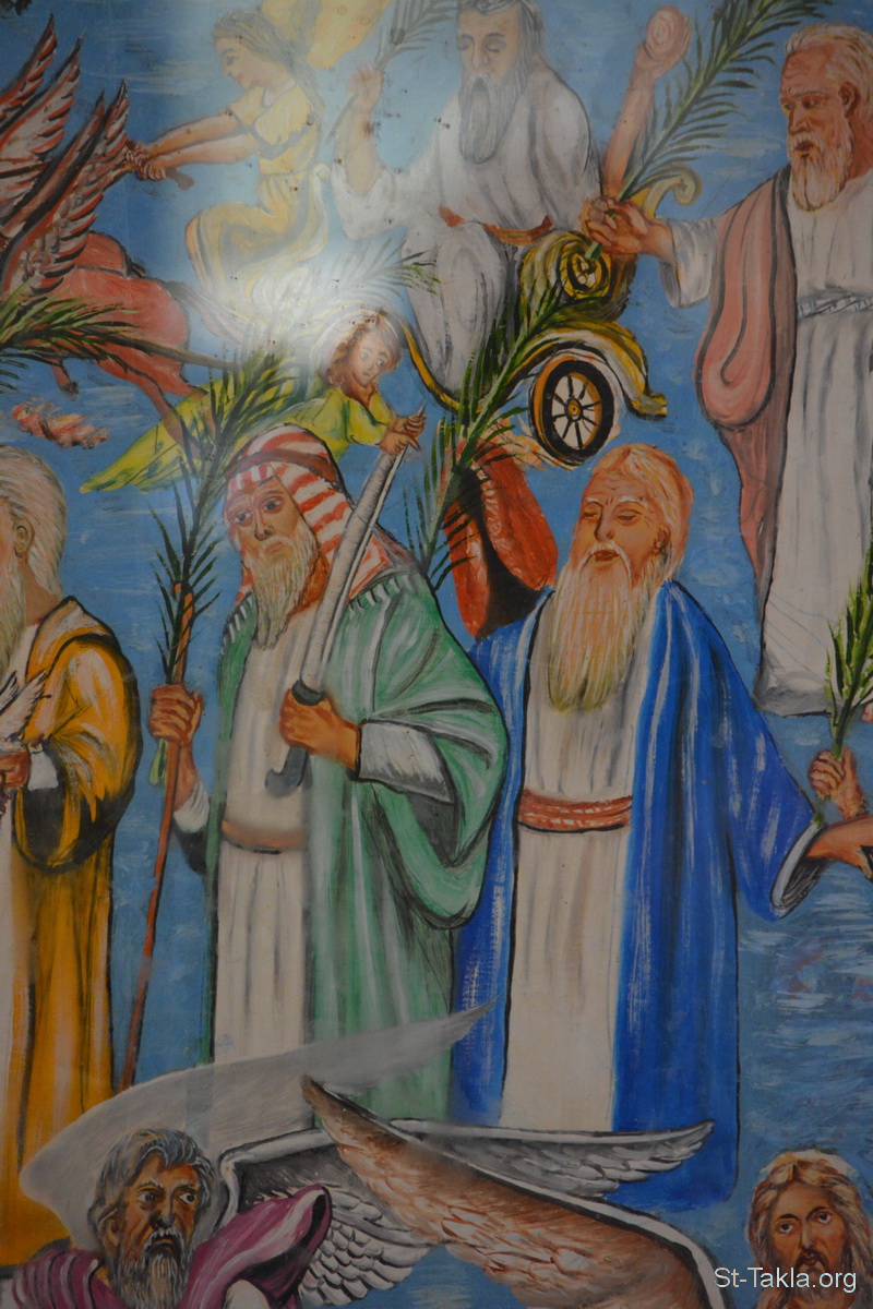 أبرار العهد القديم: يشوع - إيليا - تفاصيل من أيقونة أحداث سفر رؤيا يوحنا اللاهوتي، رسم الأب الراهب مكاريوس البرموسي، مضيفة دير البراموس، وادي النطرون، مصر - تصوير مايكل غالي لموقع الأنبا تكلاهيمانوت، 21 أكتوبر 2018 م.