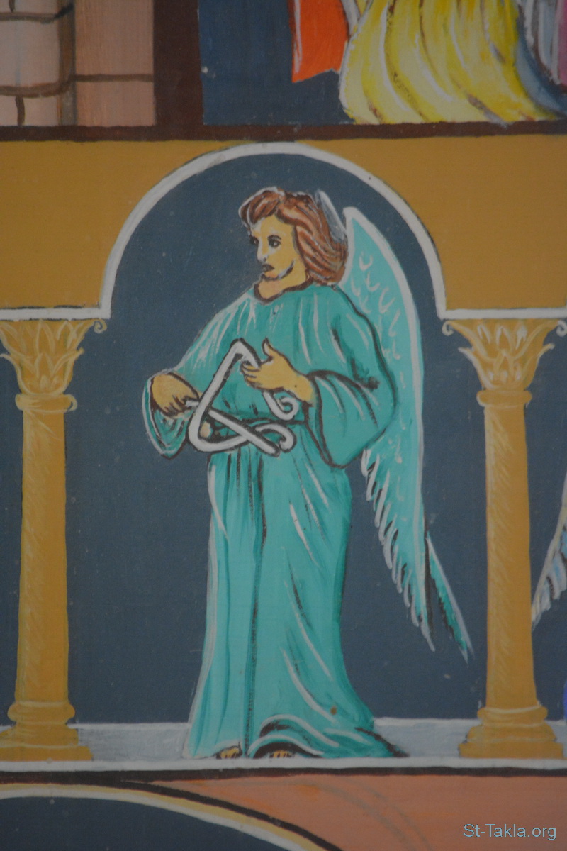 ملاك (3) - تفاصيل من أيقونة أحداث سفر رؤيا يوحنا اللاهوتي، رسم الأب الراهب مكاريوس البرموسي، مضيفة دير البراموس، وادي النطرون، مصر - تصوير مايكل غالي لموقع الأنبا تكلاهيمانوت، 21 أكتوبر 2018 م.