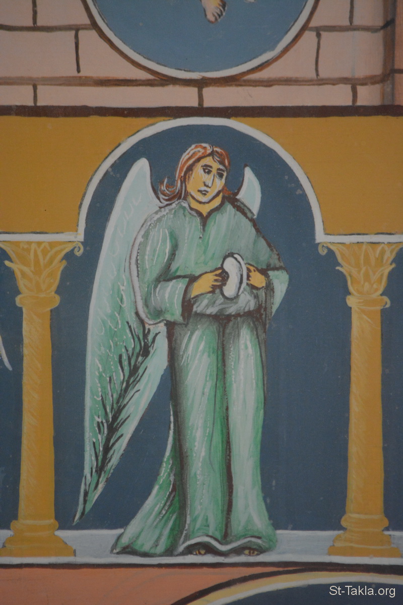 ملاك (4) - تفاصيل من أيقونة أحداث سفر رؤيا يوحنا اللاهوتي، رسم الأب الراهب مكاريوس البرموسي، مضيفة دير البراموس، وادي النطرون، مصر - تصوير مايكل غالي لموقع الأنبا تكلاهيمانوت، 21 أكتوبر 2018 م.