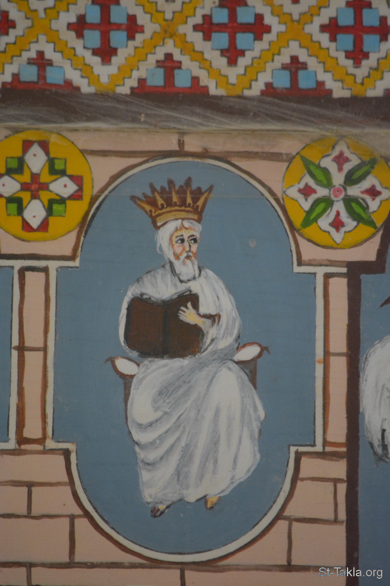 واحد من الأربعة والعشرون قسيسًا (21): "وحول العرش أربعة وعشرون عرشا. ورأيت على العروش أربعة وعشرين شيخا جالسين متسربلين بثياب بيض، وعلى رؤوسهم أكاليل من ذهب" (الرؤيا 4: 4) - تفاصيل من أيقونة أحداث سفر رؤيا يوحنا اللاهوتي، رسم الأب الراهب مكاريوس البرموسي، مضيفة دير البراموس، وادي النطرون، مصر - تصوير مايكل غالي لموقع الأنبا تكلاهيمانوت، 21 أكتوبر 2018 م.