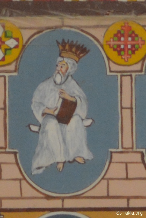واحد من الأربعة والعشرون قسيسًا (23): "وحول العرش أربعة وعشرون عرشا. ورأيت على العروش أربعة وعشرين شيخا جالسين متسربلين بثياب بيض، وعلى رؤوسهم أكاليل من ذهب" (الرؤيا 4: 4) - تفاصيل من أيقونة أحداث سفر رؤيا يوحنا اللاهوتي، رسم الأب الراهب مكاريوس البرموسي، مضيفة دير البراموس، وادي النطرون، مصر - تصوير مايكل غالي لموقع الأنبا تكلاهيمانوت، 21 أكتوبر 2018 م.