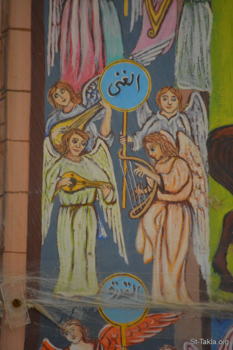 الغنى: "ونظرت وسمعت صوت ملائكة كثيرين حول العرش والحيوانات والشيوخ، وكان عددهم ربوات ربوات وألوف ألوف، قائلين بصوت عظيم: «مستحق هو الخروف المذبوح أن يأخذ القدرة والغنى والحكمة والقوة والكرامة والمجد والبركة!»" (الرؤيا 5: 11-12) - تفاصيل من أيقونة أحداث سفر رؤيا يوحنا اللاهوتي، رسم الأب الراهب مكاريوس البرموسي، مضيفة دير البراموس، وادي النطرون، مصر - تصوير مايكل غالي لموقع الأنبا تكلاهيمانوت، 21 أكتوبر 2018 م.