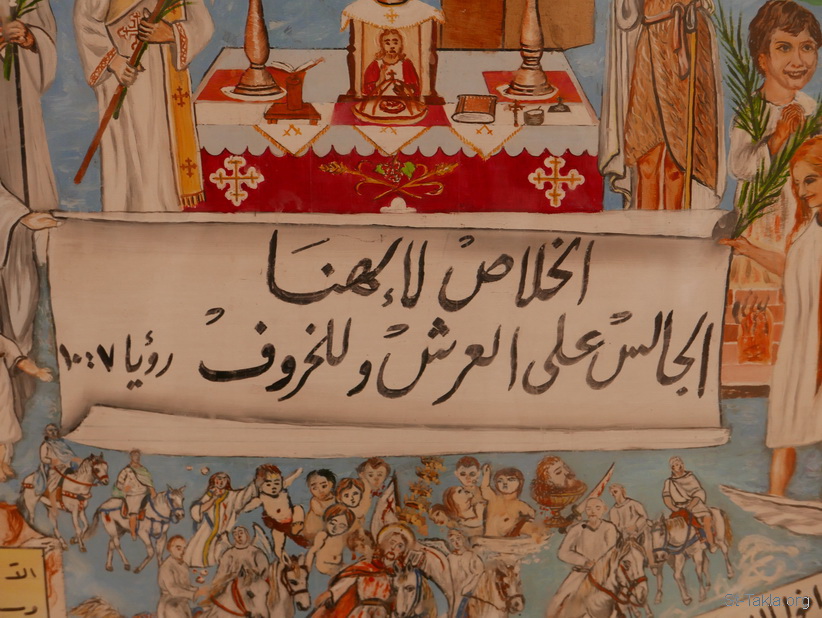 "الخلاص لإلهنا الجالس على العرش وللخروف" (الرؤيا 7: 10) - تفاصيل من أيقونة أحداث سفر رؤيا يوحنا اللاهوتي، رسم الأب الراهب مكاريوس البرموسي، مضيفة دير البراموس، وادي النطرون، مصر - تصوير مايكل غالي لموقع الأنبا تكلاهيمانوت، 21 أكتوبر 2018 م.