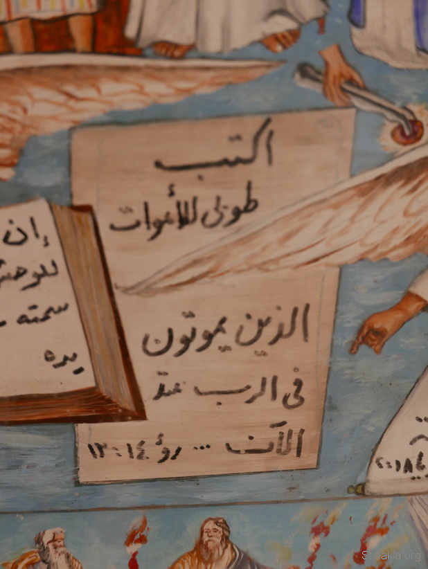 "اكتب: طوبى للأموات الذين يموتون في الرب منذ الآن" (الرؤيا 14: 13) - تفاصيل من أيقونة أحداث سفر رؤيا يوحنا اللاهوتي، رسم الأب الراهب مكاريوس البرموسي، مضيفة دير البراموس، وادي النطرون، مصر - تصوير مايكل غالي لموقع الأنبا تكلاهيمانوت، 21 أكتوبر 2018 م.