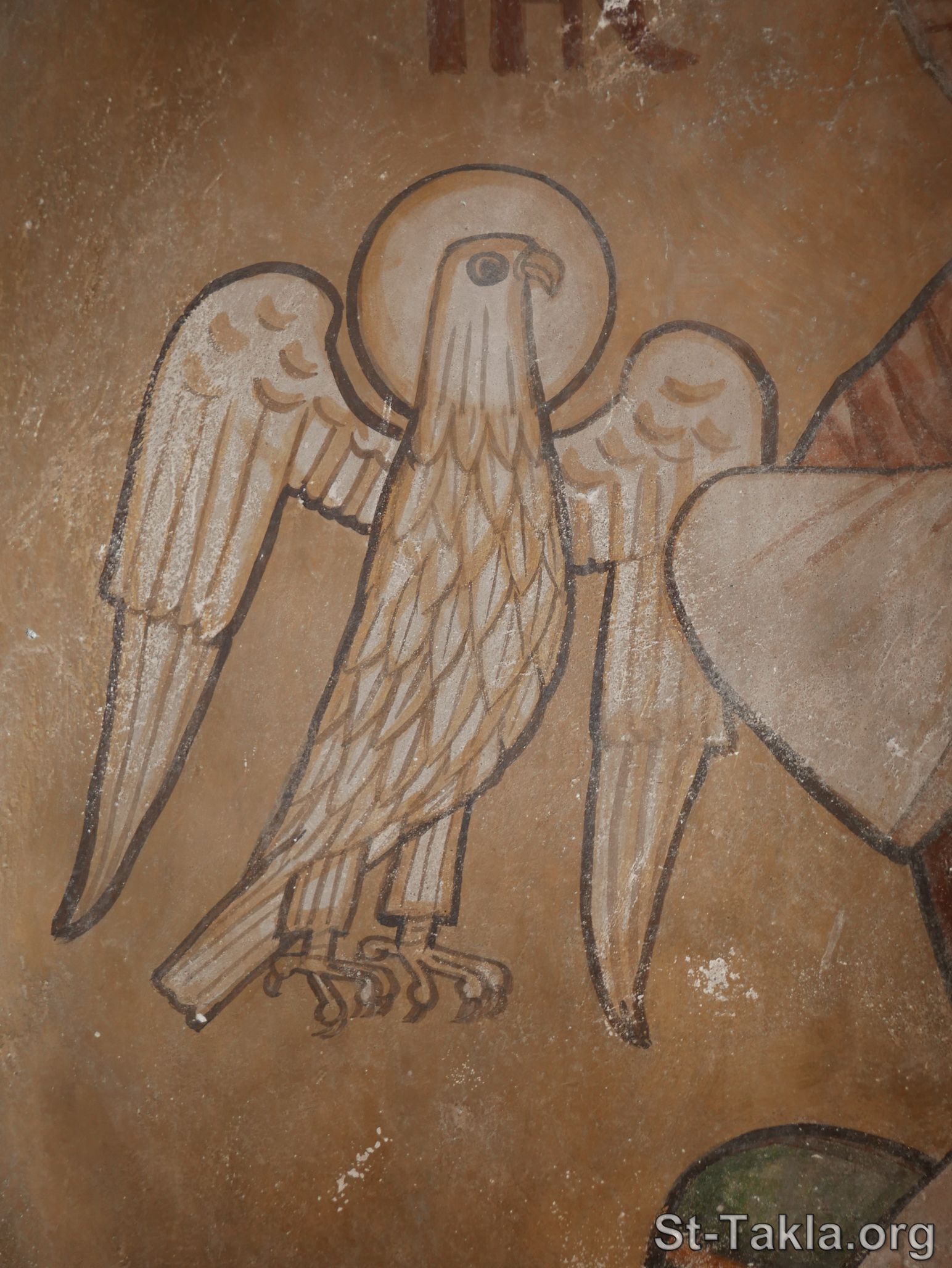 النسر رمز إنجيل يوحنا، رسم الفنان إيزاك فانوس. - كنيسة مارجرجس الأثرية (صورة 21)، دير الأنبا بيشوي، وادي النطرون، مصر. - تصوير مايكل غالي لموقع الأنبا تكلاهيمانوت، 5 مارس 2024 م.