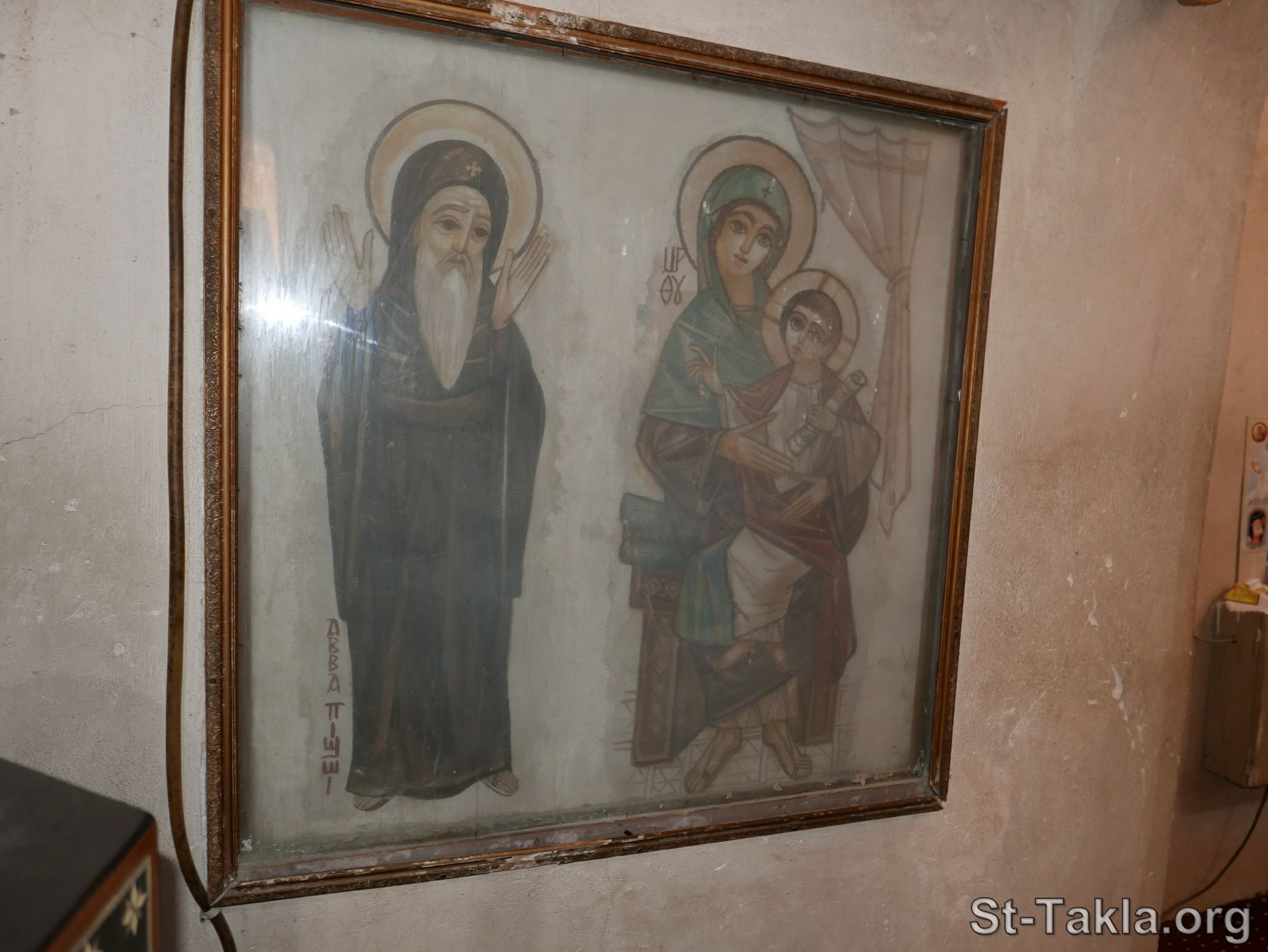 القديسة مريم مع الطفل يسوع، والأنبا بيشوي حبيب المسيح، رسم الفنان إيزاك فانوس. - كنيسة مارجرجس الأثرية (صورة 27)، دير الأنبا بيشوي، وادي النطرون، مصر. - تصوير مايكل غالي لموقع الأنبا تكلاهيمانوت، 5 مارس 2024 م.