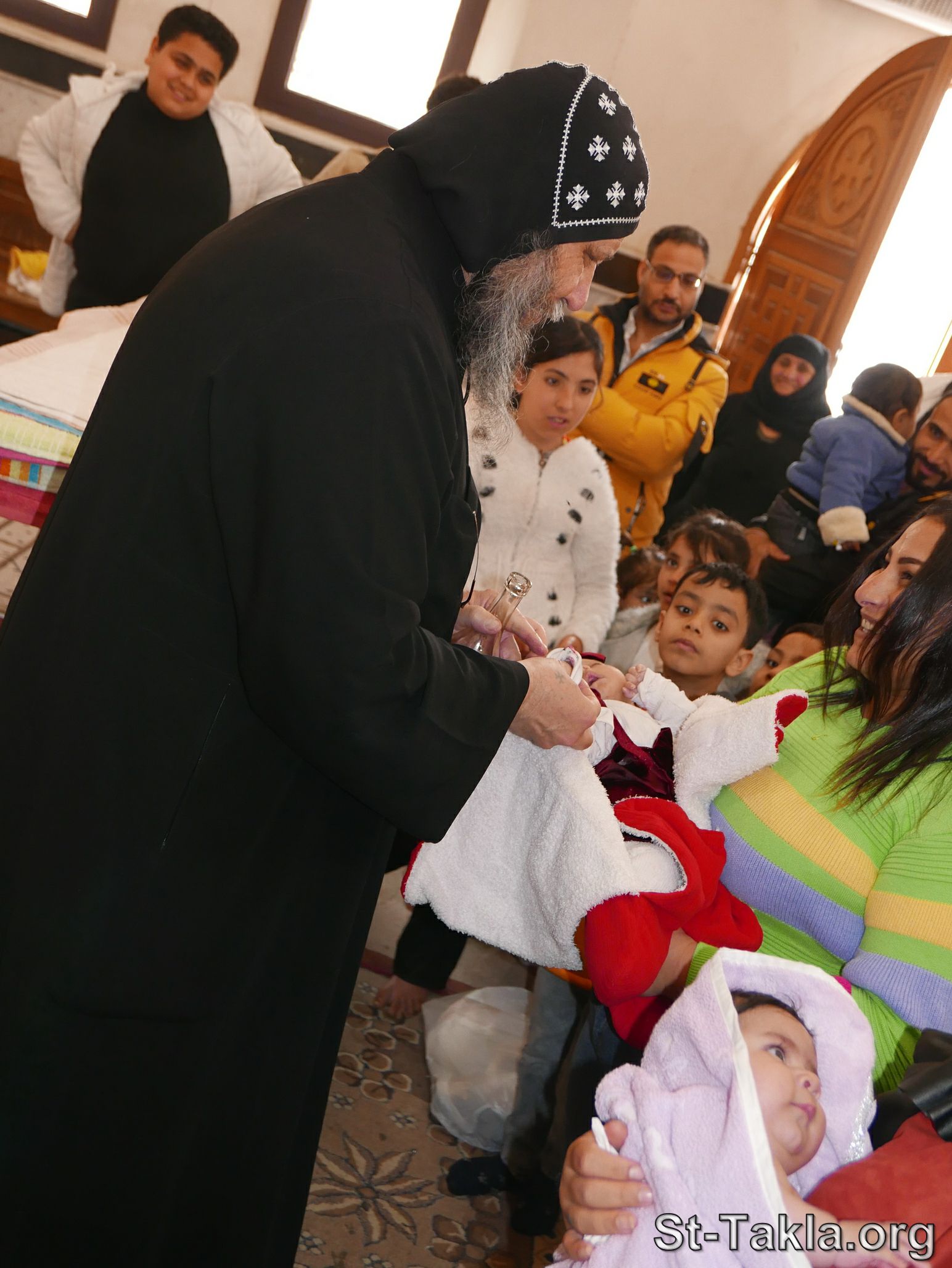- Baptizing young infants at the Baptistery: Baptism (image 44) - Monastery of Saint Bishoy, Wadi El-Natrun, Egypt - Photograph by Michael Ghaly for St-Takla.org, 17 March 2024.