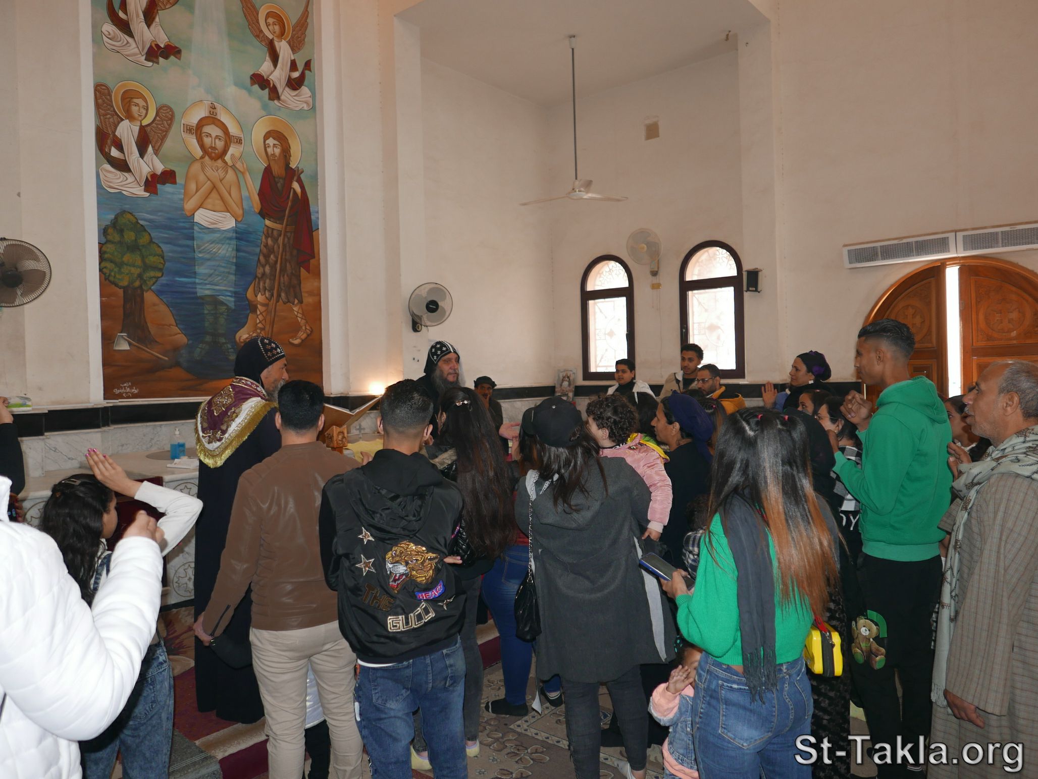 - Baptizing young infants at the Baptistery: Baptism (image 47) - Monastery of Saint Bishoy, Wadi El-Natrun, Egypt - Photograph by Michael Ghaly for St-Takla.org, 17 March 2024.