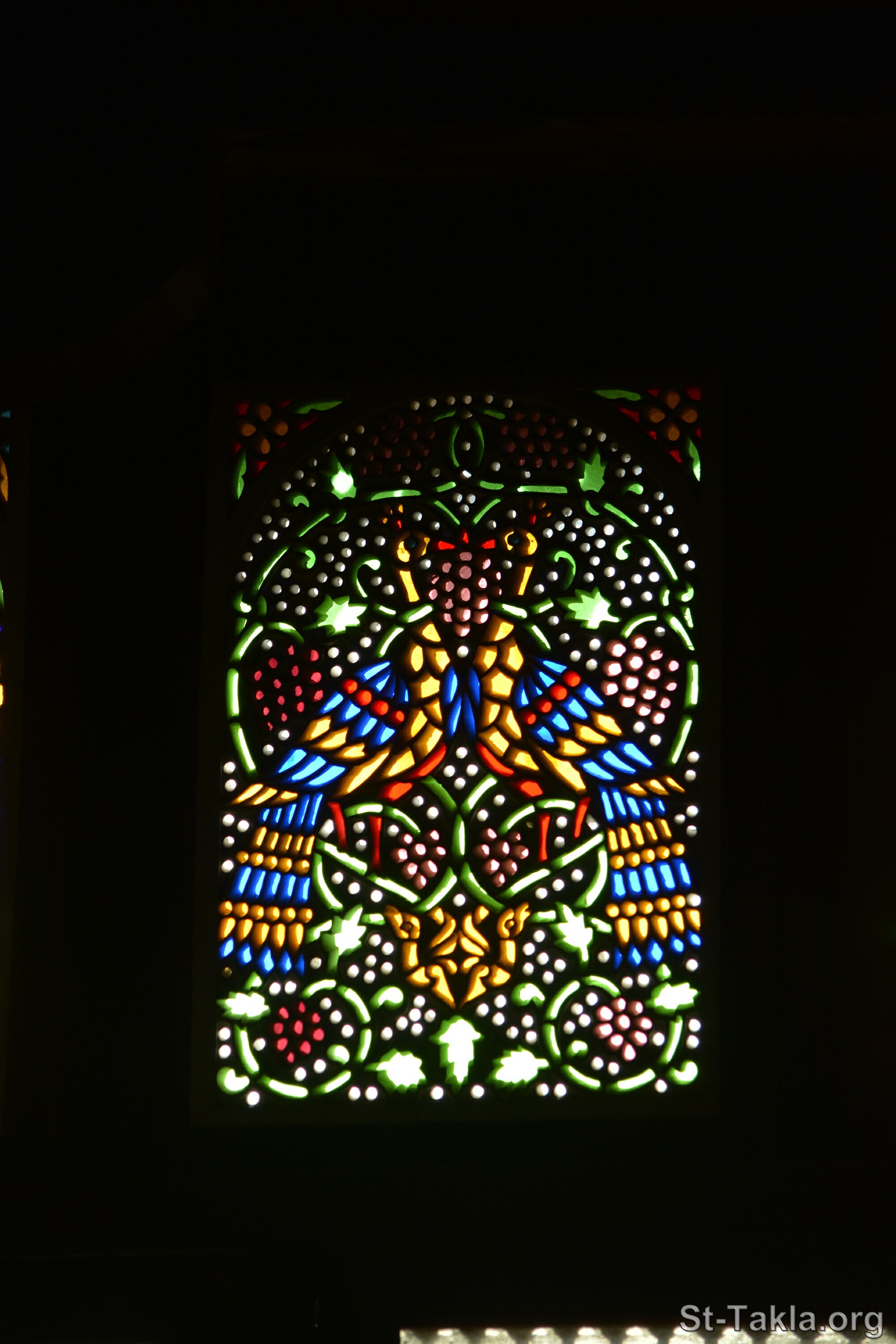 Colored stained glass window art in a plaster framework - The Coptic Museum (image 1896), Cairo, Egypt - Photograph by Michael Ghaly for St-Takla.org, 20 November 2023.