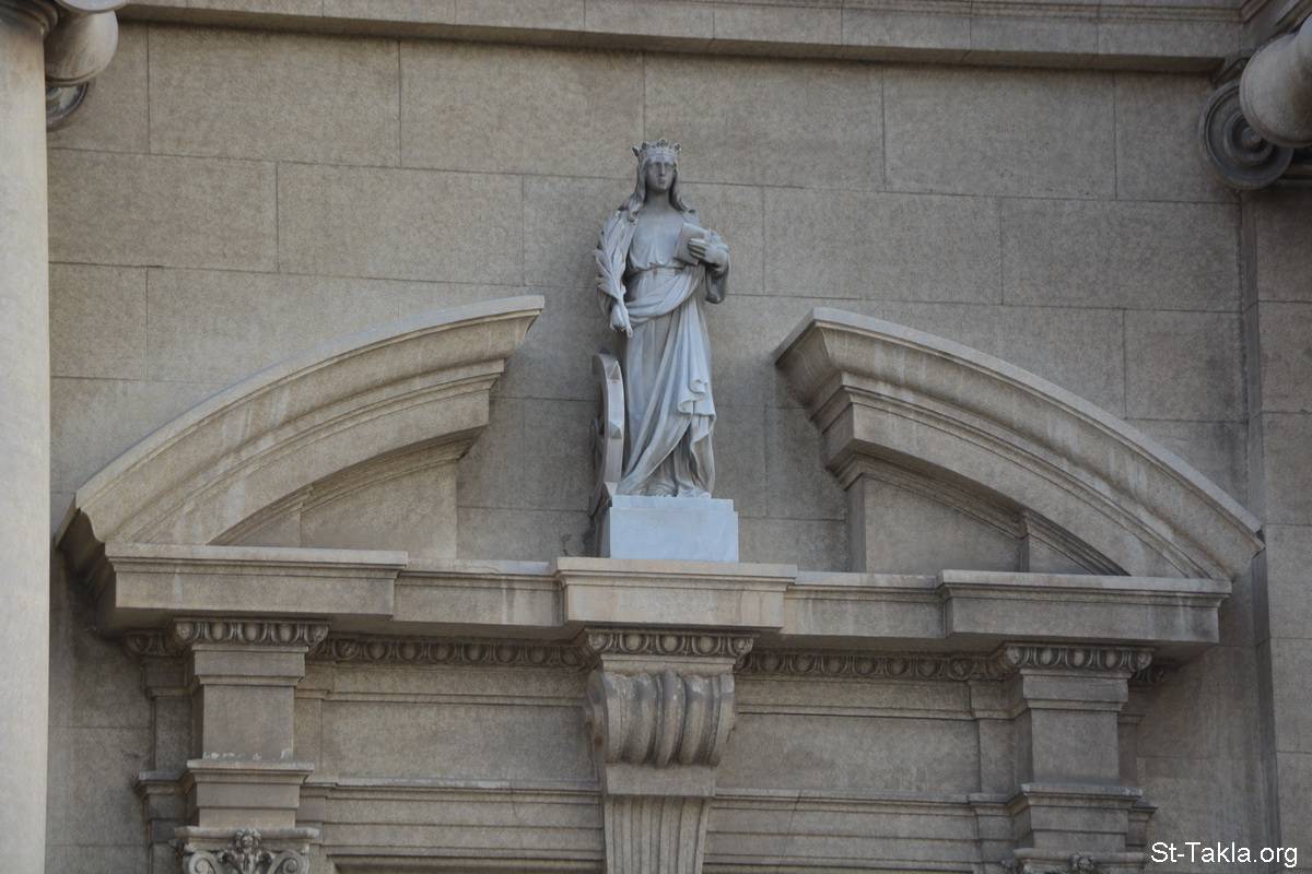 Statue of St. Catherine of Egypt (photo 3) - Saint Catherine Church (Roman Catholic Cathedral), Manshia, Alexandria, Egypt, founded in 1850 - Photograph by Michael Ghaly for St-Takla.org, January 24, 2013 and November 3, 2015.