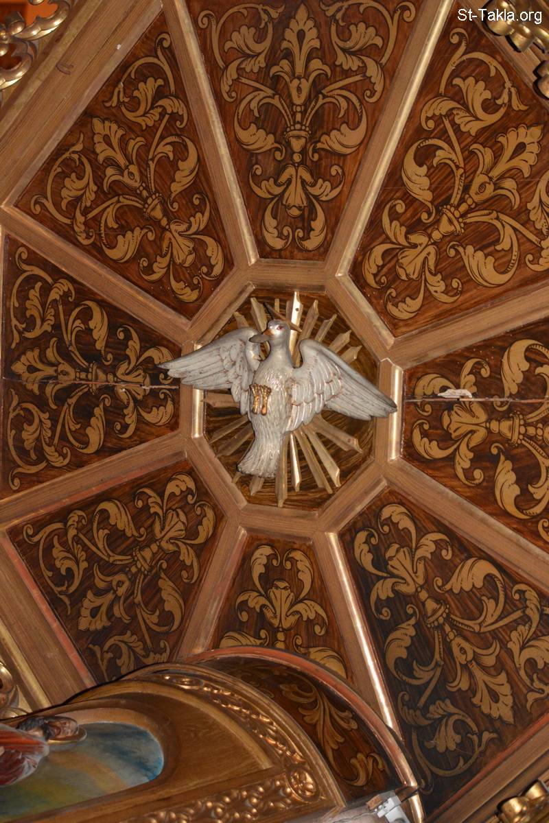 حمامة خشبية: رمز الروح القدس - كنيسة القلب المقدس (الكنيسة اللاتينية الكاثوليكية)، سبورتنج، الإسكندرية، مصر - تصوير مايكل غالي لـ: موقع الأنبا تكلا هيمانوت، 3 سبتمبر 2015 م.