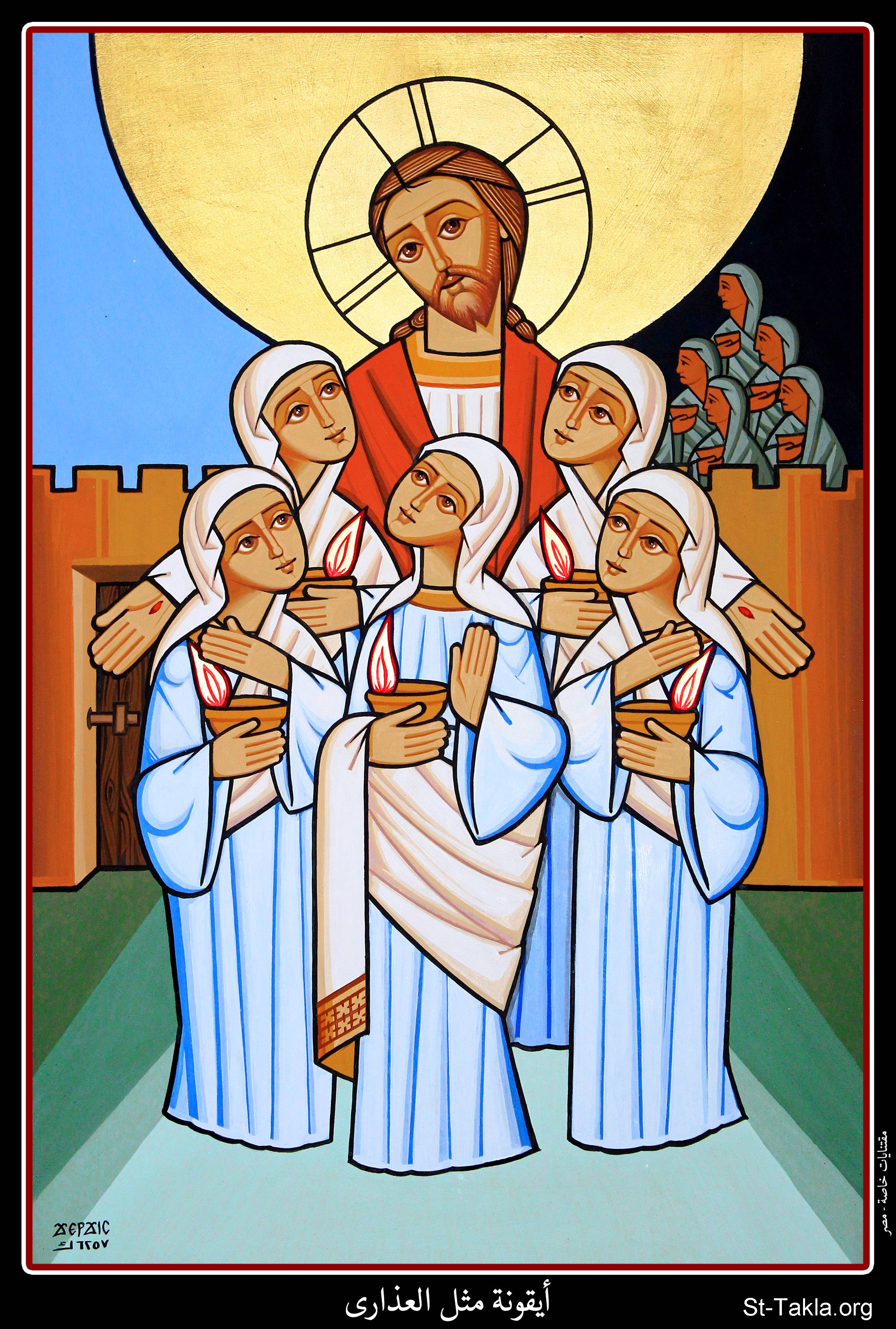 أيقونة مثل العذارى، مقتنيات خاصة، مصر، 1732 ش. (2015-2016 م. - والذي يوافق سنة 6257 حسب التقويم المصري القديم)، فن قبطي، موضوعة بإذن - رسم الفنان جرجس سمير: كاتب الأيقونة الأرثوذكسية