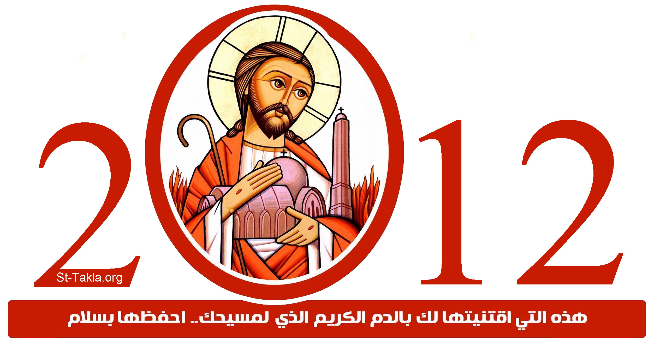 2012 - رقم السنة الميلادية مع فن قبطي (السيد المسيح يحافظ على كنيسته)، موضوعة بإذن - رسم الفنان جرجس سمير.