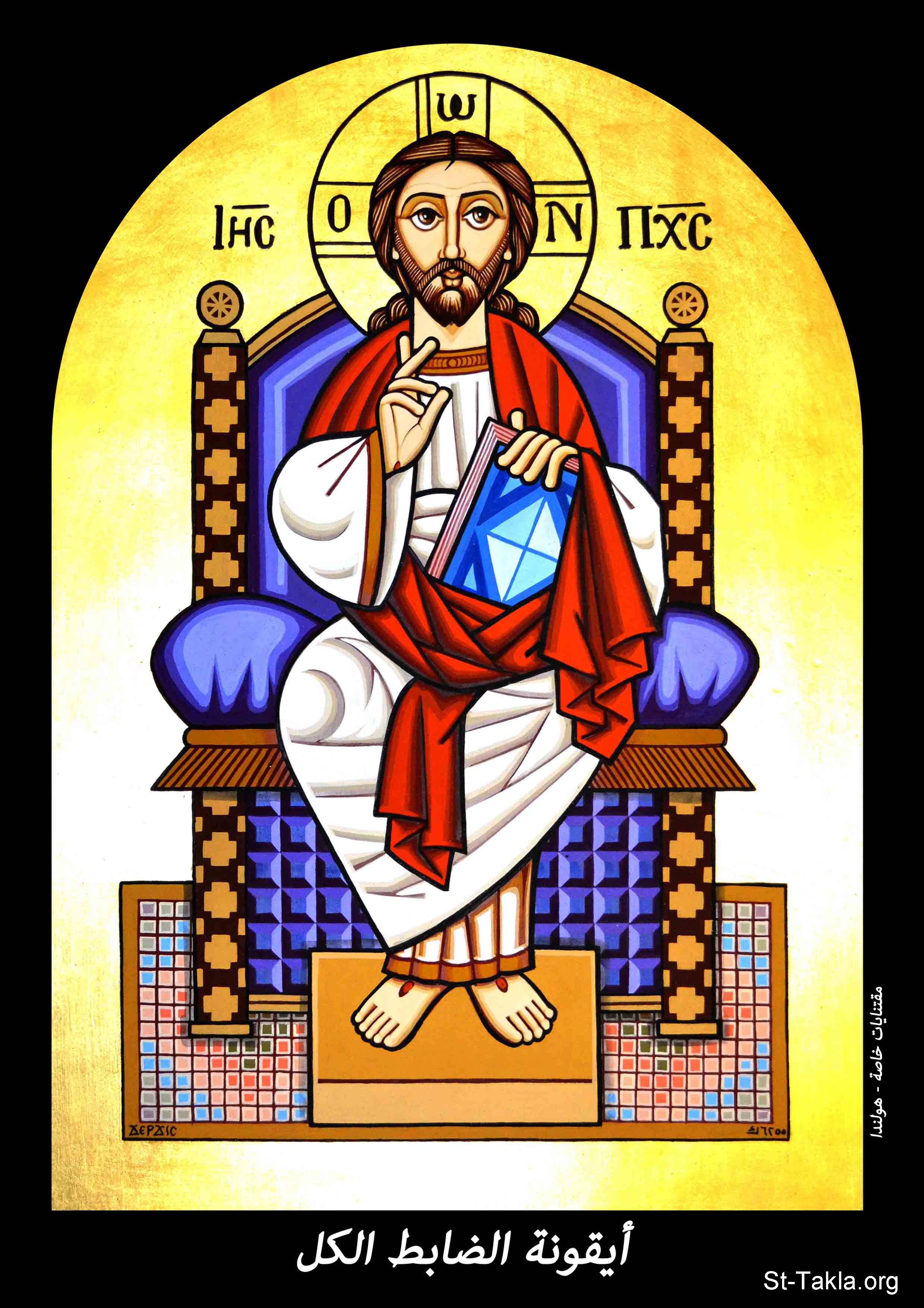 أيقونة الضابط الكل، مقتنيات خاصة، هولندا، 1730 ش. (2013-2014 م. - والذي يوافق سنة 6255 حسب التقويم المصري القديم)، فن قبطي، موضوعة بإذن - رسم الفنان جرجس سمير: كاتب الأيقونة الأرثوذكسية