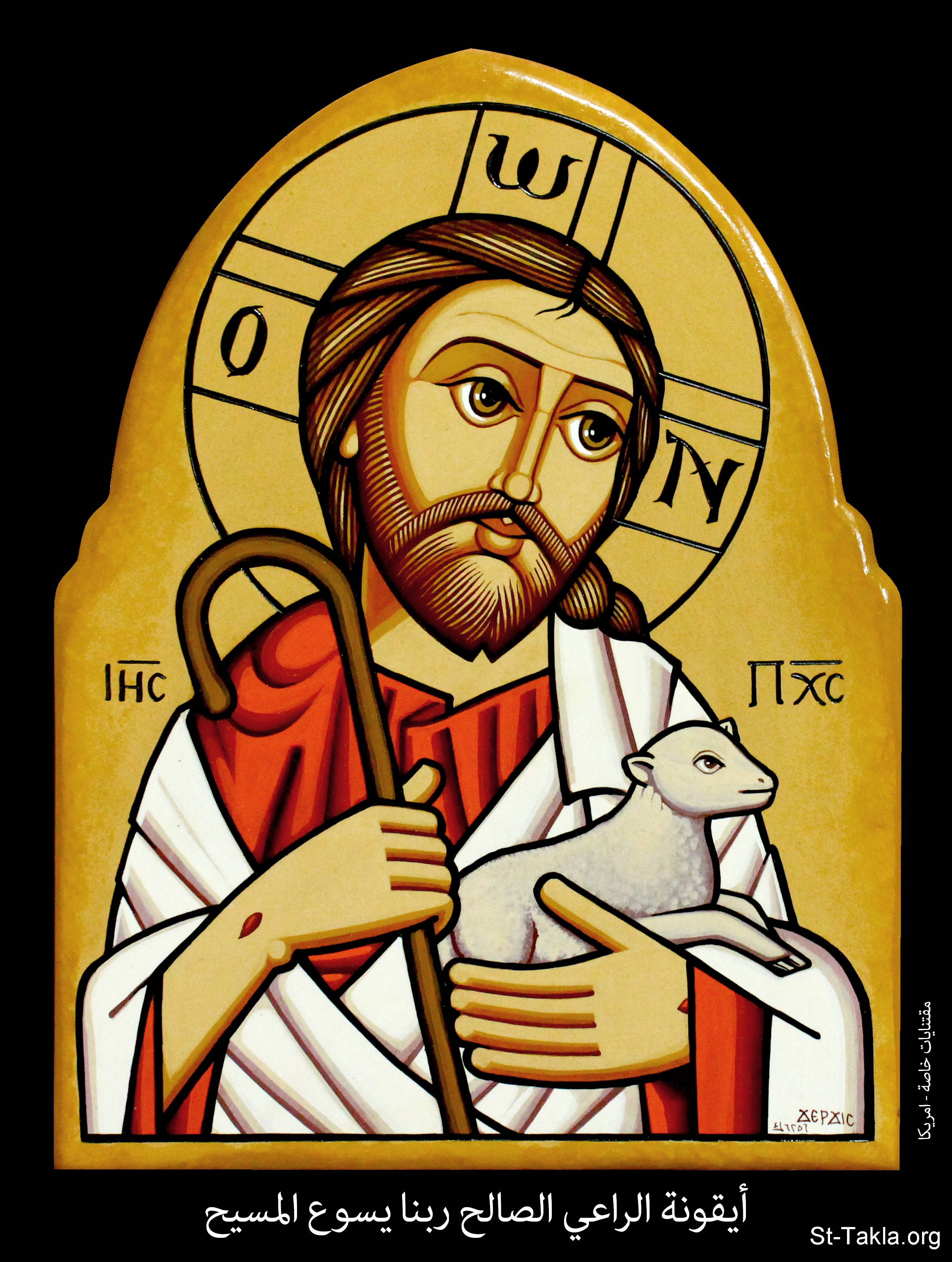 أيقونة الراعي الصالح ربنا يسوع المسيح، مقتنيات خاصة، أمريكا، 1731 ش. (2014-2015 م. - والذي يوافق سنة 6256 حسب التقويم المصري القديم)، فن قبطي، موضوعة بإذن - رسم الفنان جرجس سمير: كاتب الأيقونة الأرثوذكسية