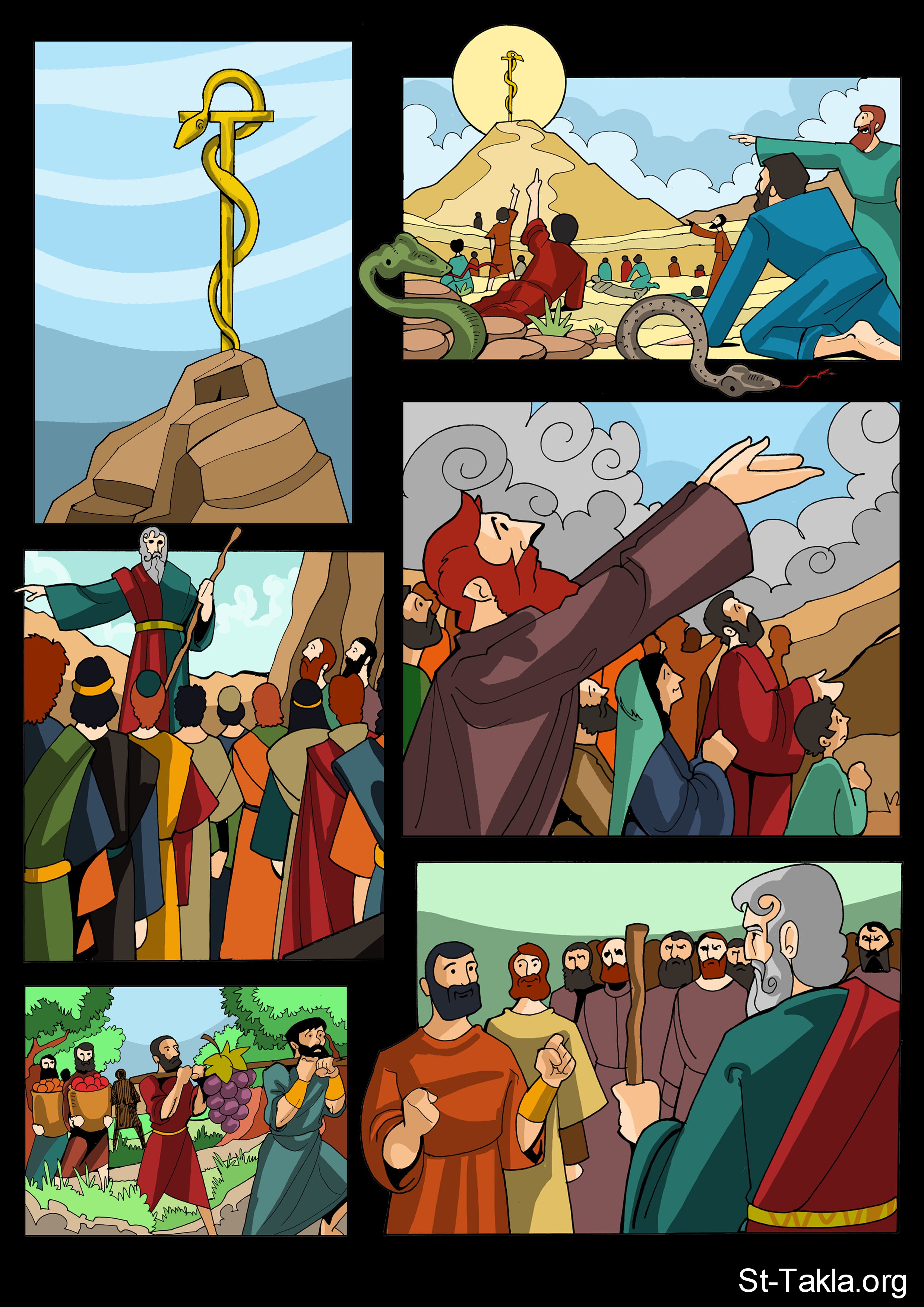 كرتون موسى النبي والحية النحاسية، مهرجان الكرازة 2011، قلم رصاص وحبر ثم أدوبي فوتوشوب، موضوعة بإذن - رسم الفنان مينا أنطون.
