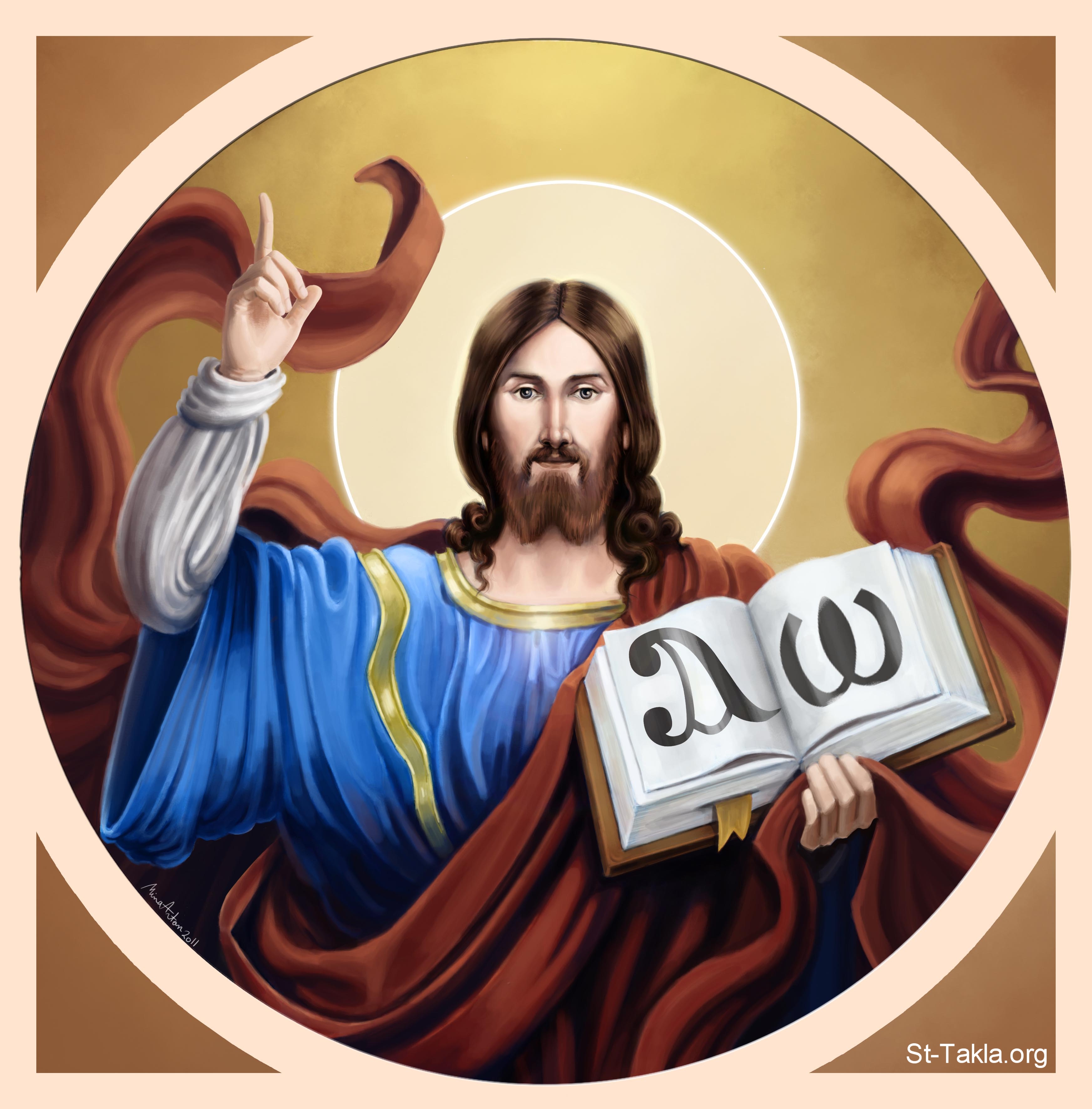 السيد المسيح، الألفا والأوميجا (الألف والياء)، تطوير من الأسلوب البيزنطي برؤية تقليدية، تم عملها ببرامج الفوتوشوب وبينتر 11، موضوعة بإذن - رسم الفنان مينا أنطون.