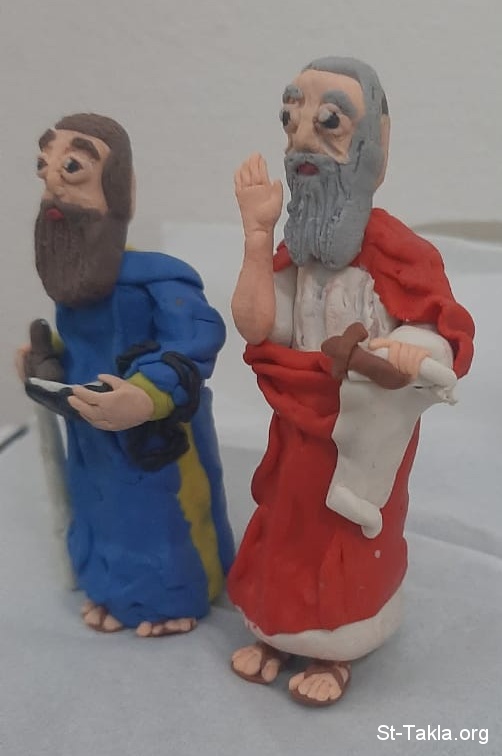 القديس بطرس (يمين) والقديس بولس (صورة 2) - فن صلصال من الكتاب المقدس، عمل الطفلة يوأنا وجيه جابر (10 سنوات)، مُستخدمة بإذن، الإسكندرية، مصر، 2021 م.