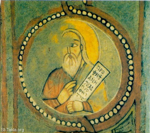 إيليا النبى - أيقونة من ضمن ستة أيقونات لأنبياء، موجودة على الحنية التي في مدخل الهيكل الأوسط بالكنيسة الأثرية بدير الأنبا أنطونيوس بالبحر الأحمر، ويرجع تاريخها إلى القرن الثالث عشر الميلادي، ومكتوب عليها بالحروف القبطية - أيقونة قبطية من أيقونات تصور شخصيات وأحداث العهد القديم
