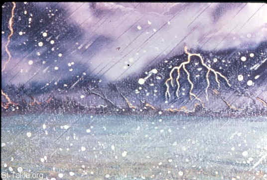 نزول العواصف الثلجية والرعود النارية (خروج 9: 22-35).