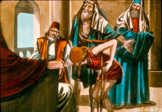مفيبوشث ابن يوناثان أمام داود الملك (صموئيل الثاني 9: 5، 6)