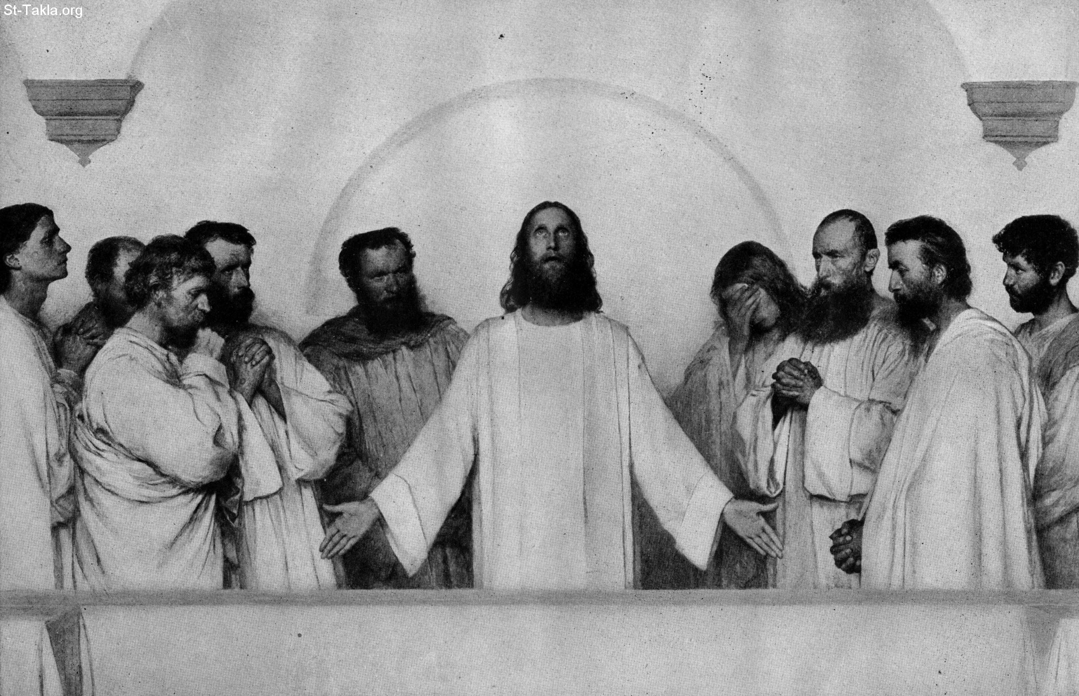السيد المسيح مع تلاميذه في عظته الأخيرة ووصاياه - من كتاب "الإنجيل وقصته"، إصدار تشارلز هورن، 1909 م.