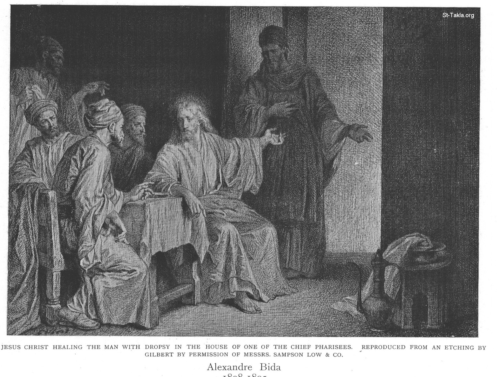 يسوع المسيح بشفى الرجل المستسق فى بيت أحد رؤساء الفريسيين (لوقا 14: 1-6)، رسم ألكساندر بيدا