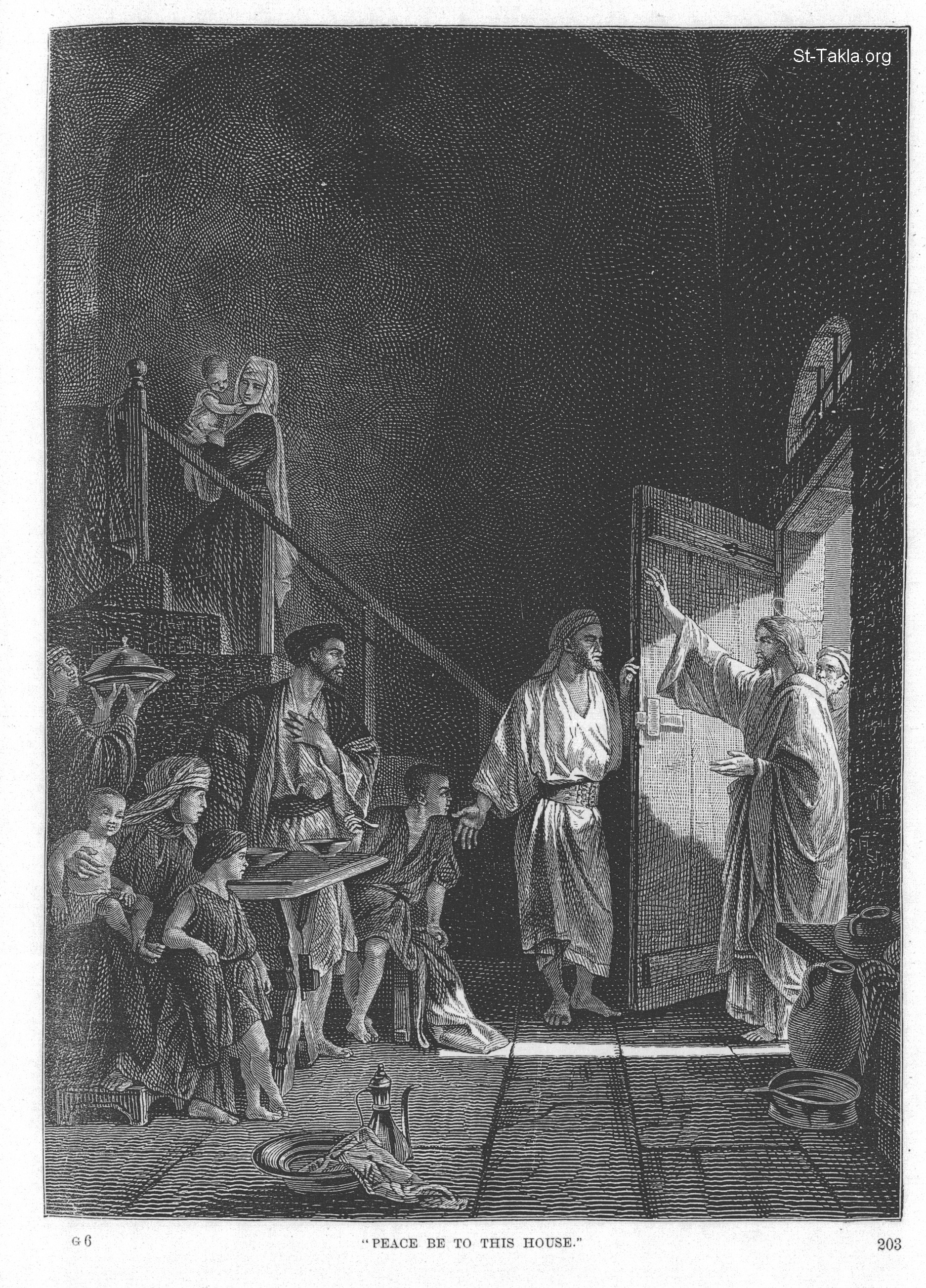 "Peace be to this house" - from "Illustrations of the Life of Christ", "From Christ in Art"; & "The Gospel Life of Jesus", artwork by Alexandre Bida, publisher: Edward Eggleston, New York: Fords, Howard, & Hulbert, 1874.