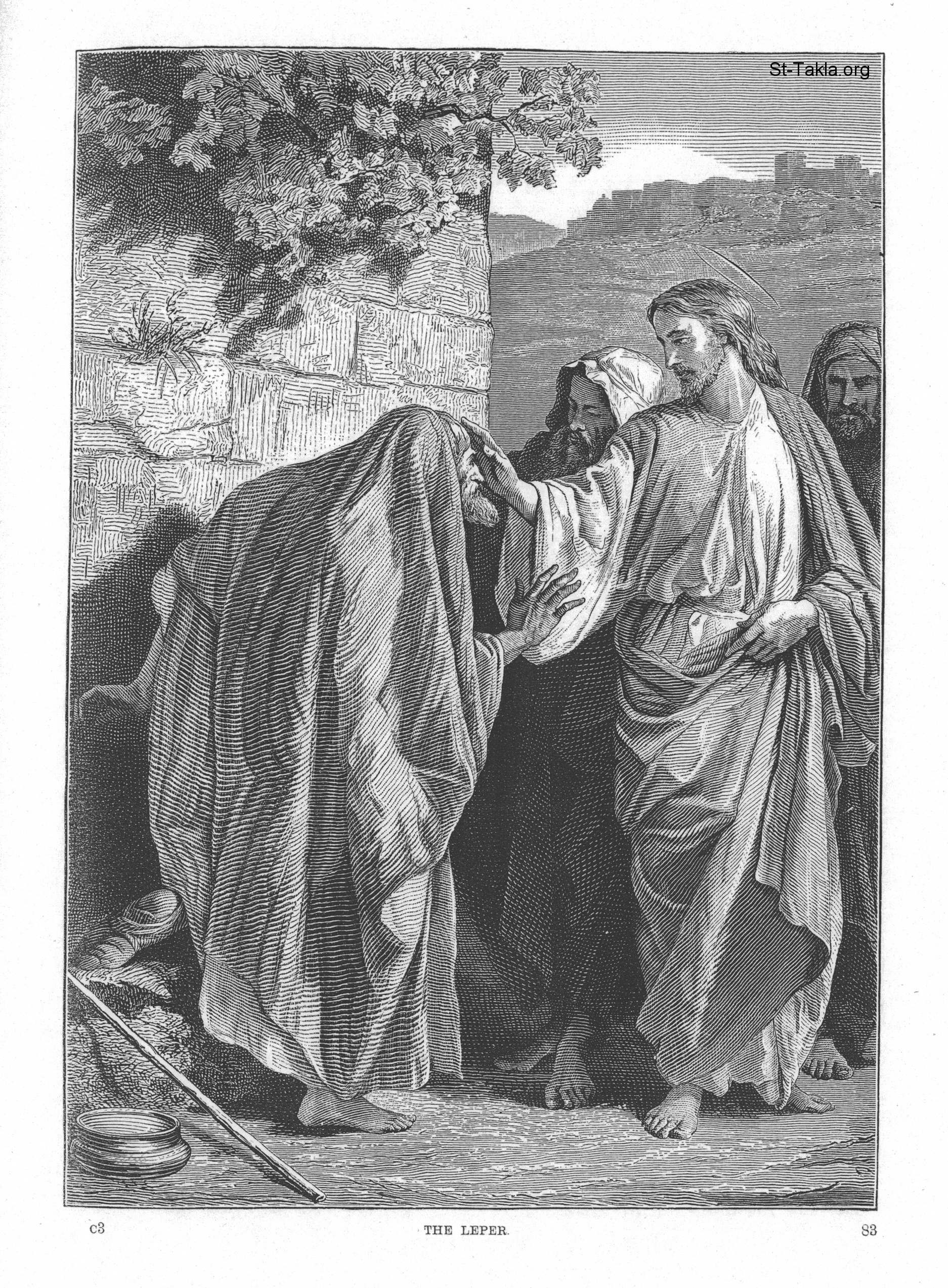 شفاء الأبرص - من كتب "حياة المسيح المصورة"، "من المسيح في الفن"، و"الحياة الإنجيلية ليسوع"، للفنان أليكساندر بيدا، إصدار إدوارد إجيلستون، نيويورك: فوردز، هاورد وهيلبيرت، 1874 م.