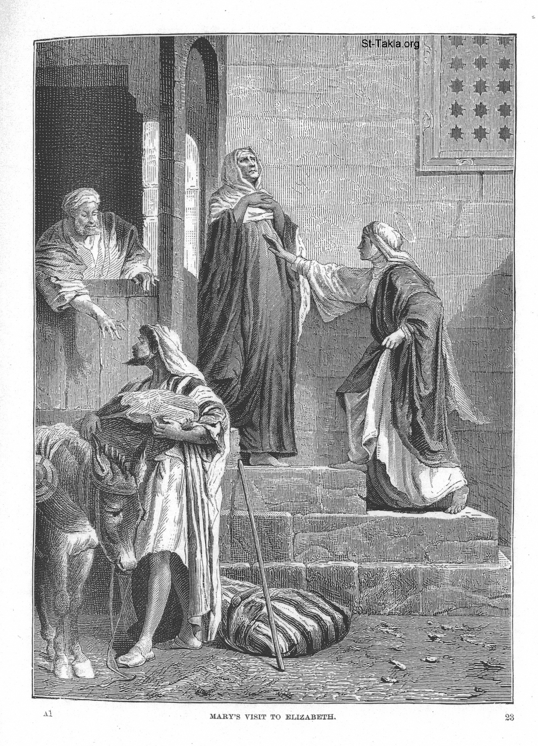 زيارة القديسة مريم العذراء للقديسة أليصابات - من كتب "حياة المسيح المصورة"، "من المسيح في الفن"، و"الحياة الإنجيلية ليسوع"، للفنان أليكساندر بيدا، إصدار إدوارد إجيلستون، نيويورك: فوردز، هاورد وهيلبيرت، 1874 م.