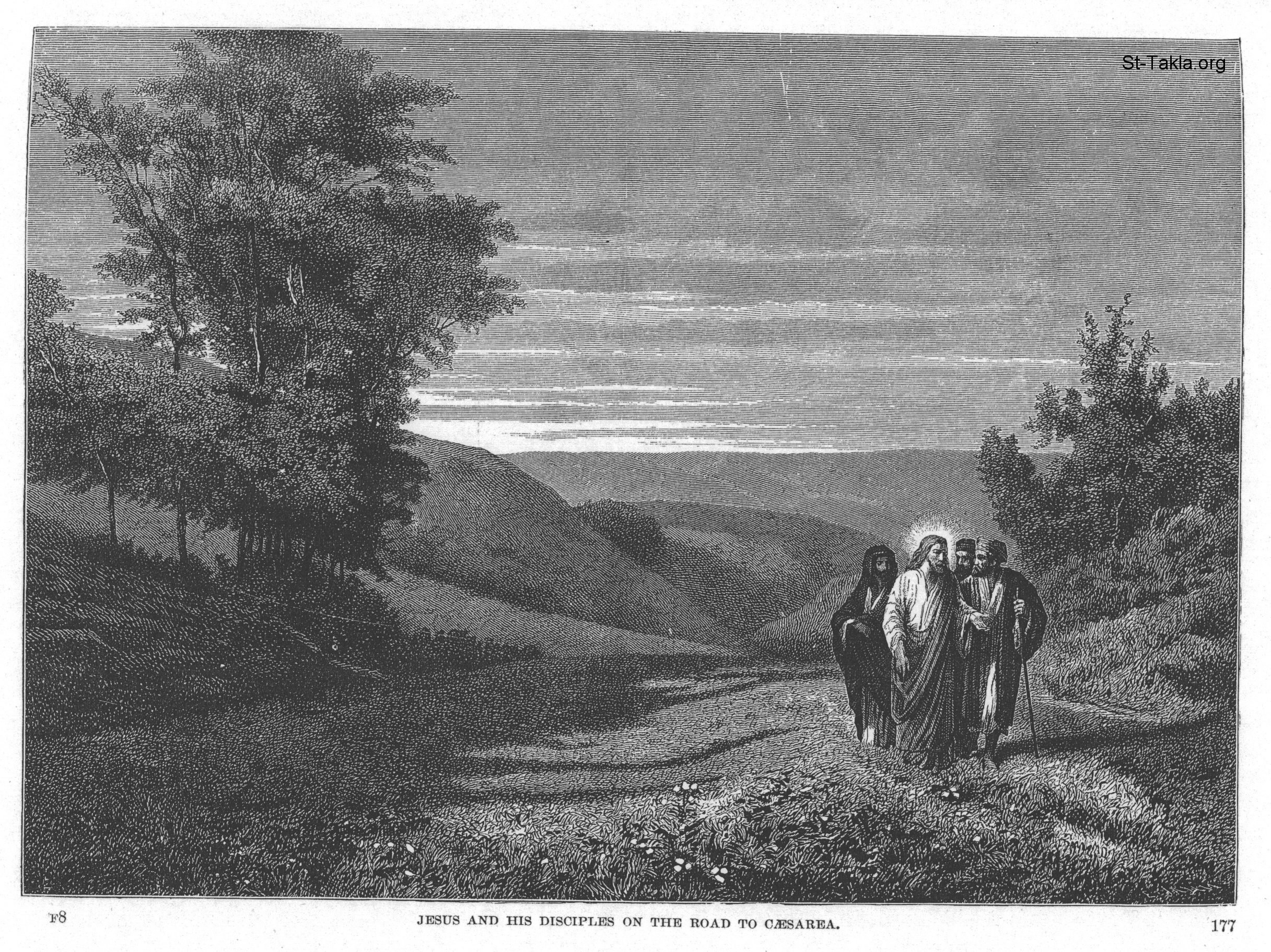 Jesus and his disciples on the road to Caesarea - from "Illustrations of the Life of Christ", "From Christ in Art"; & "The Gospel Life of Jesus", artwork by Alexandre Bida, publisher: Edward Eggleston, New York: Fords, Howard, & Hulbert, 1874.