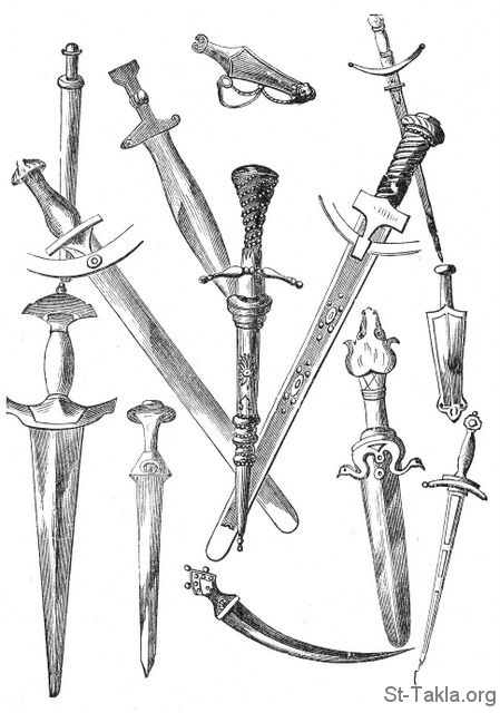 Ancient Swords - from "Religion in the Home or Captivating Bible Stories" book, by Charlotte M. Yonge, engravings by Julius Schnorr Von Karolsfeld, published by George W. Bertron, 1913.