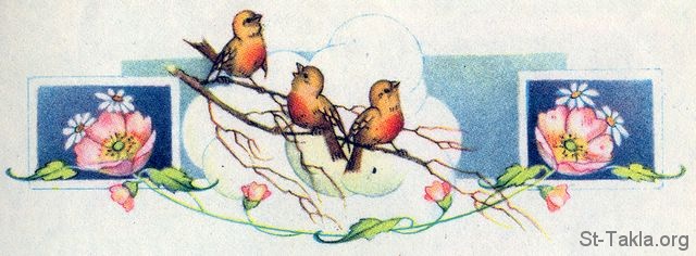 طيور تغرد مع أشكال زهور - من كتاب "قراء قصص الكتاب المقدس الأساسية"، الكتاب الثاني، ليلي أ. فارس.