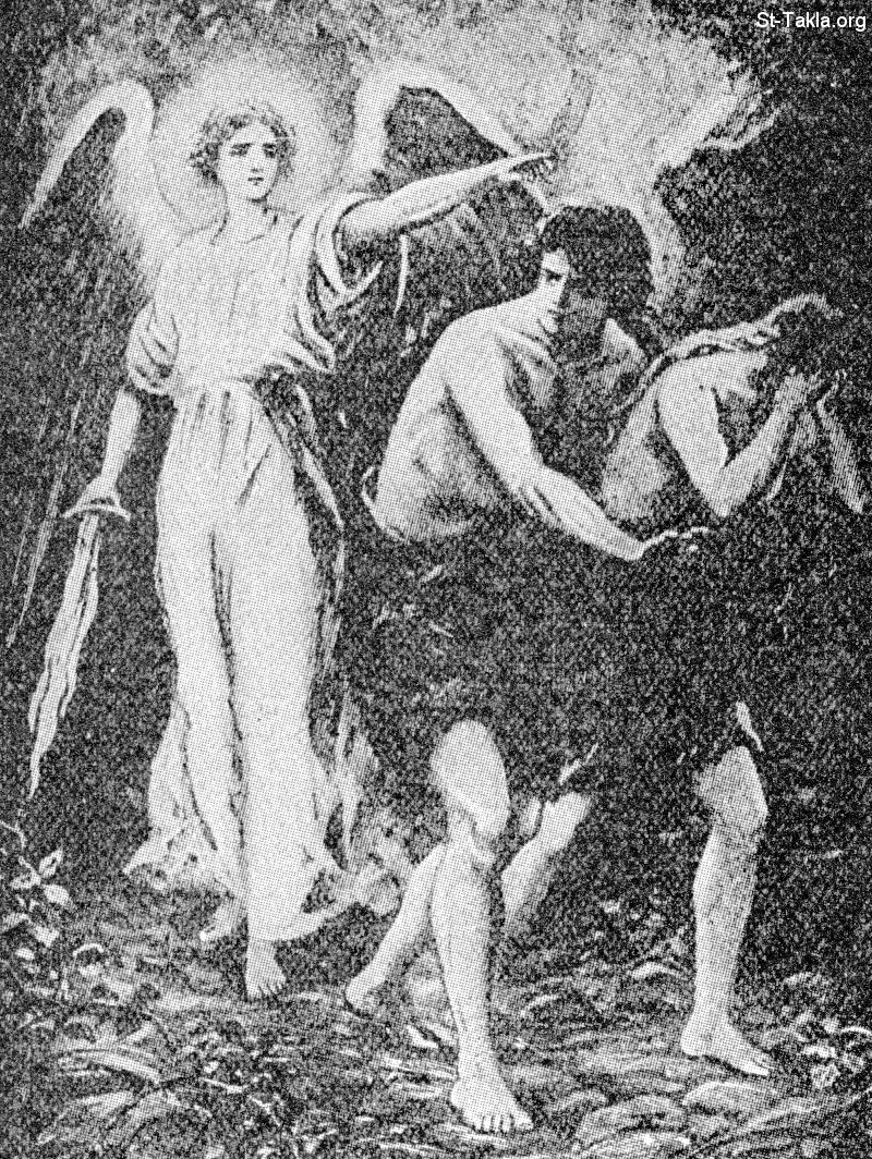 طرد حواء وآدم من الجنة - من كتاب "قصة الكتاب المقدس"، إصدار الكاهن هيرلبات، 1904.