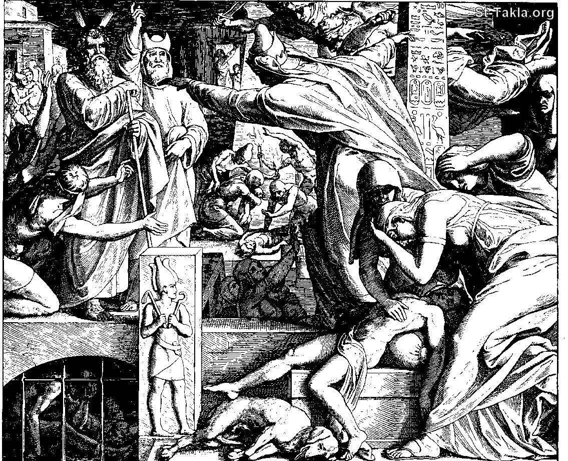 صورة فرعون يطلق بني إسرائيل : موت بكر فرعون ملك مصر