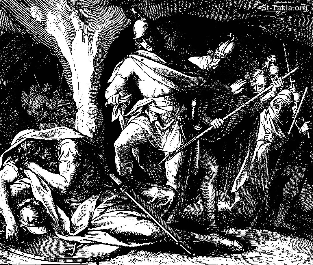 https://st-takla.org/Gallery/Bible/Illustrations/The-Book-of-Books-in-Pictures/1-Old-Testament/5-Samuel-Saul/095--David-Spares-Saul-s-Life.html